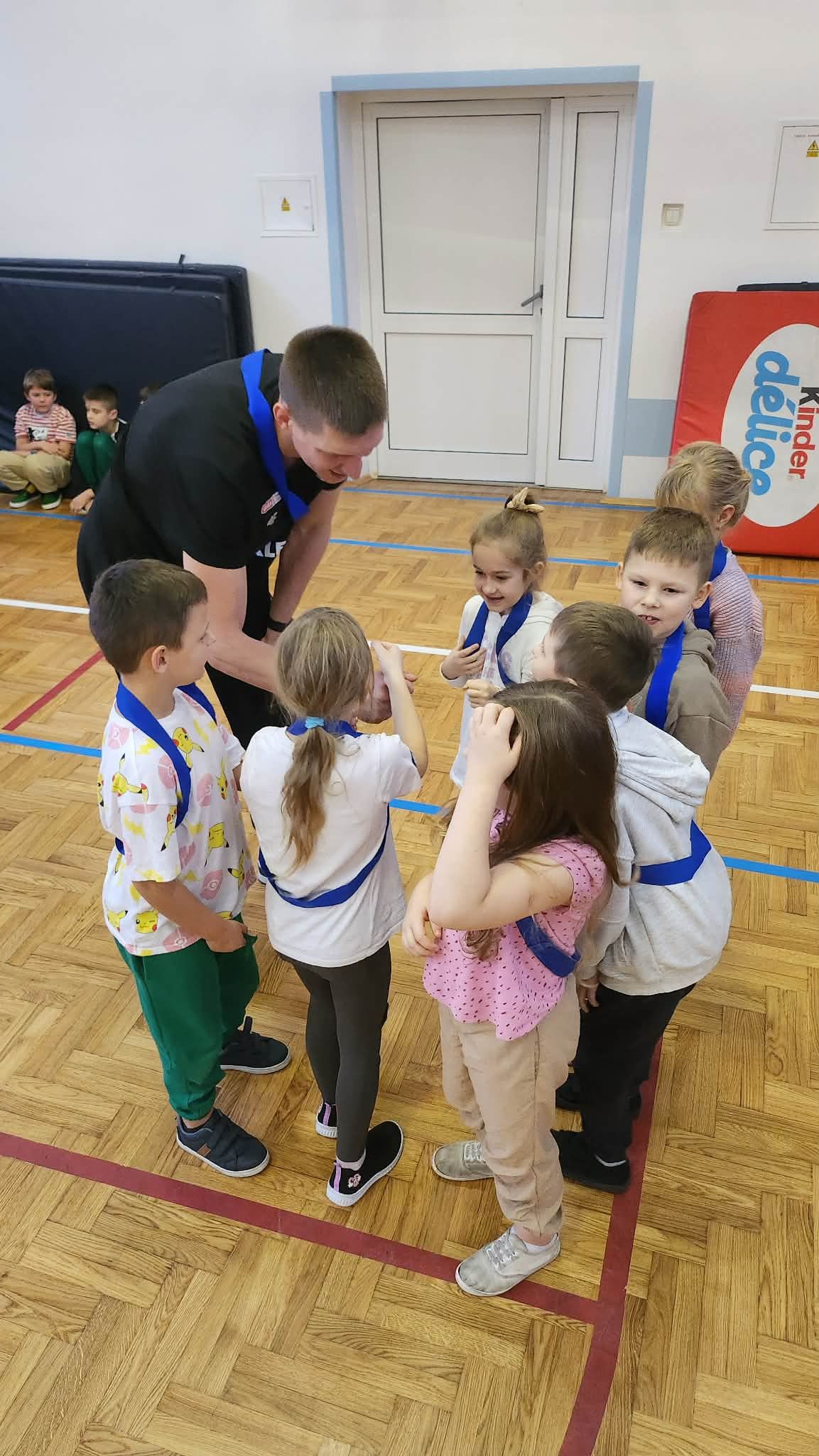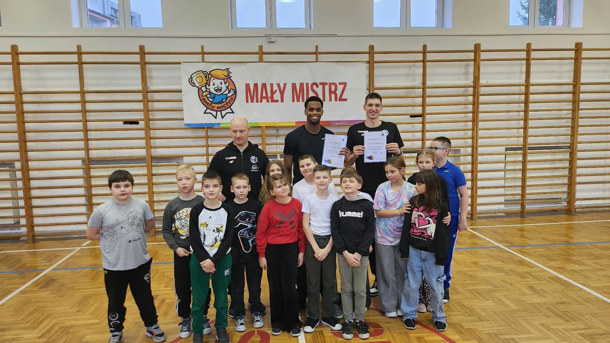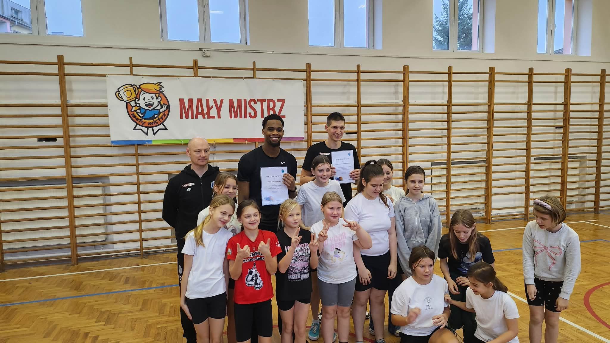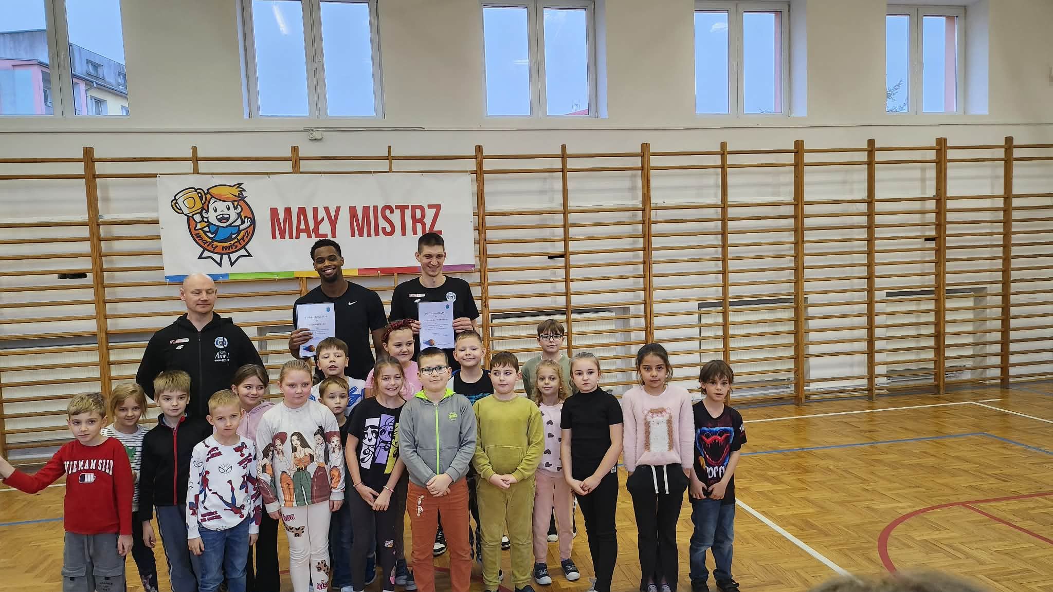 "Dnia 09.12.2025r. w naszej szkole odbyło się spotkanie w ramach programu "Mały Mistrz" z trenerem drużyny Anwil Włocławek Grzegorzem Kożanem oraz koszykarzami Dawidem Słupińskim i Isaiah'em Mucius. Panowie opowiedzieli uczniom o pracy w drużynie oraz o pasji jaką mają do sportu i koszykówki. Dzieci miały okazję zagrać z koszykarzami krótki mecz.