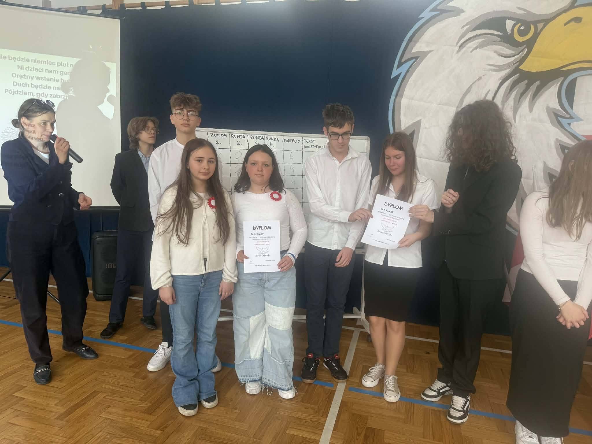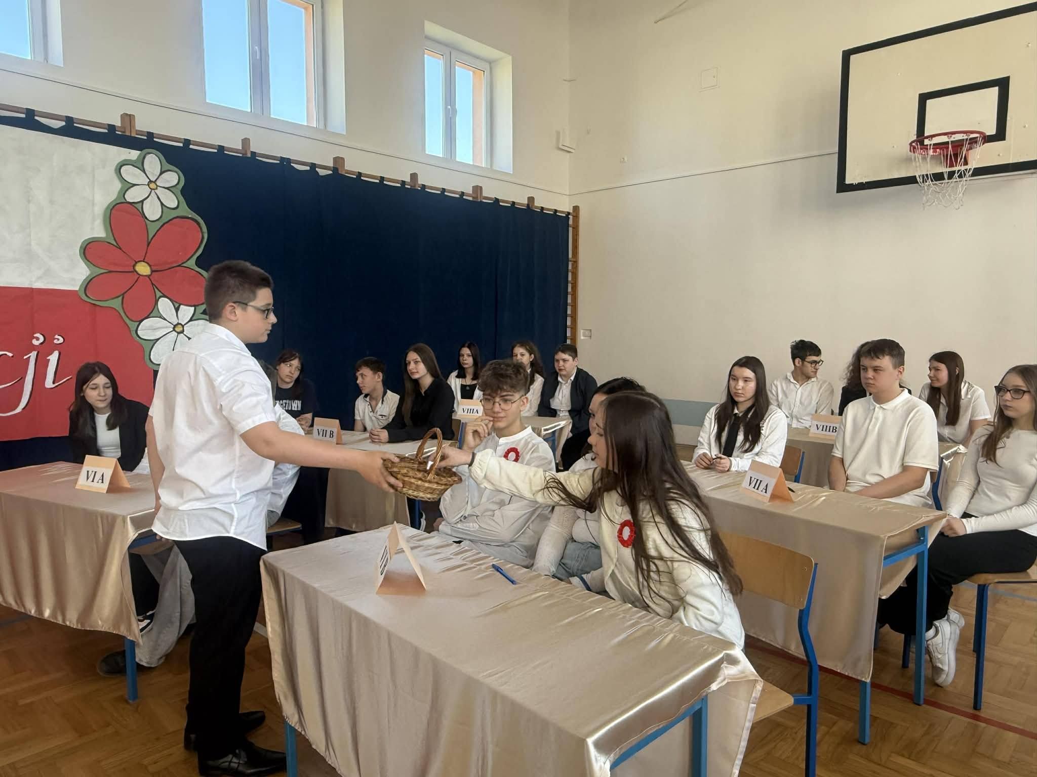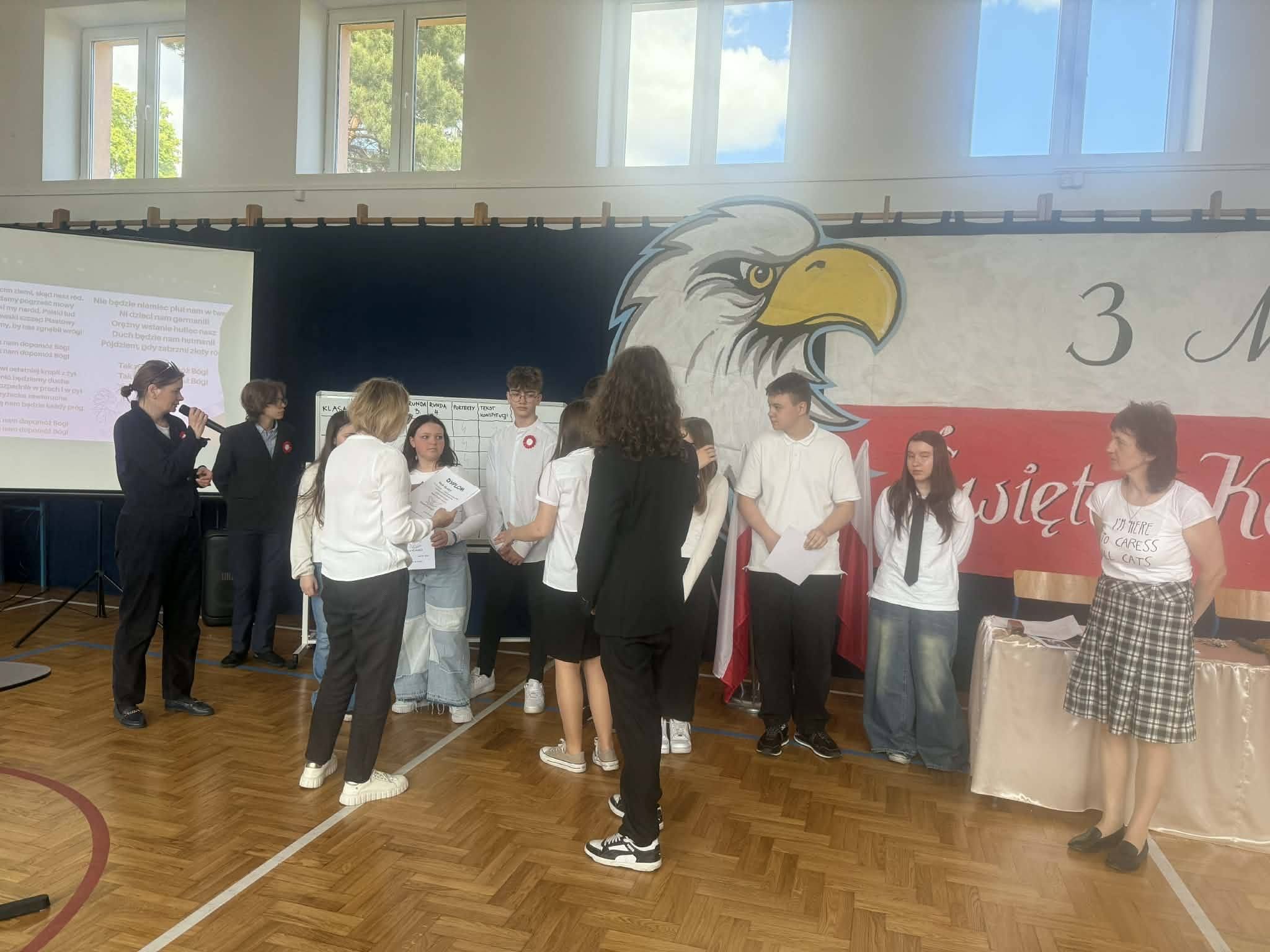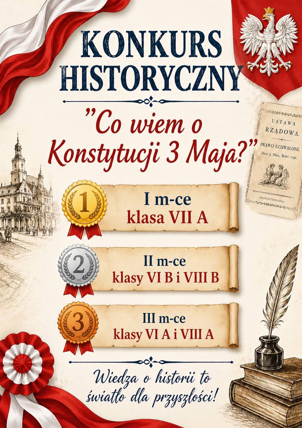 28 kwietnia w naszej szkole odbył się konkurs historyczny pt. „Co wiem o Konstytucji 3 Maja?”, którego celem było poszerzenie wiedzy uczniów na temat pierwszej w Europie i drugiej na świecie konstytucji. Uczestnicy-uczniowie z klas 6-8 musieli wykazać się znajomością okoliczności uchwalenia Konstytucji 3 maja 1791 roku, jej twórców oraz najważniejszych postanowień. Konkurs przebiegał w miłej atmosferze i wzbudził duże zainteresowanie wśród uczniów. Dzięki udziałowi w konkursie uczniowie pogłębili swoją wiedzę historyczną oraz rozwinęli postawy patriotyczne.