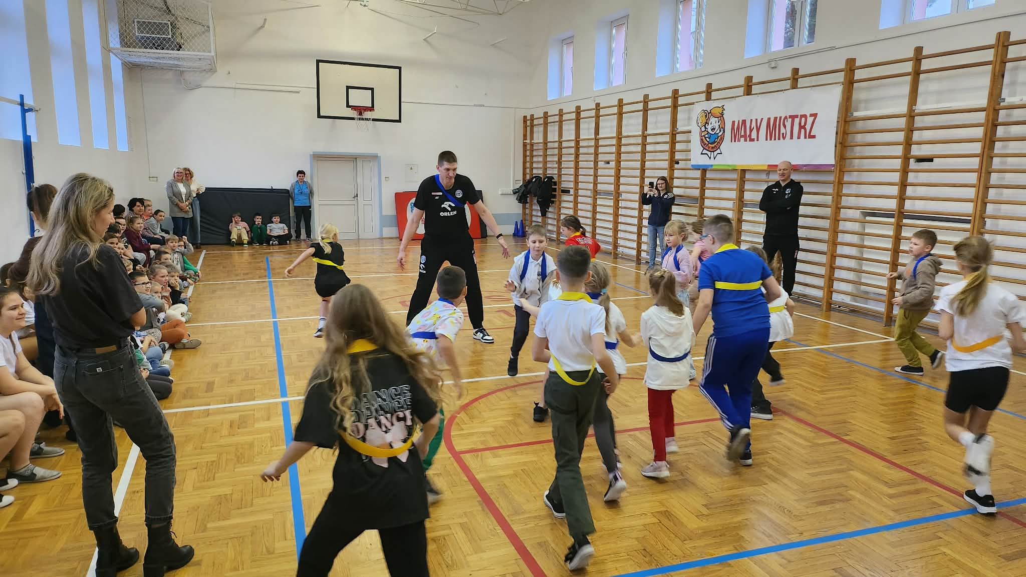 "Dnia 09.12.2025r. w naszej szkole odbyło się spotkanie w ramach programu "Mały Mistrz" z trenerem drużyny Anwil Włocławek Grzegorzem Kożanem oraz koszykarzami Dawidem Słupińskim i Isaiah'em Mucius. Panowie opowiedzieli uczniom o pracy w drużynie oraz o pasji jaką mają do sportu i koszykówki. Dzieci miały okazję zagrać z koszykarzami krótki mecz.