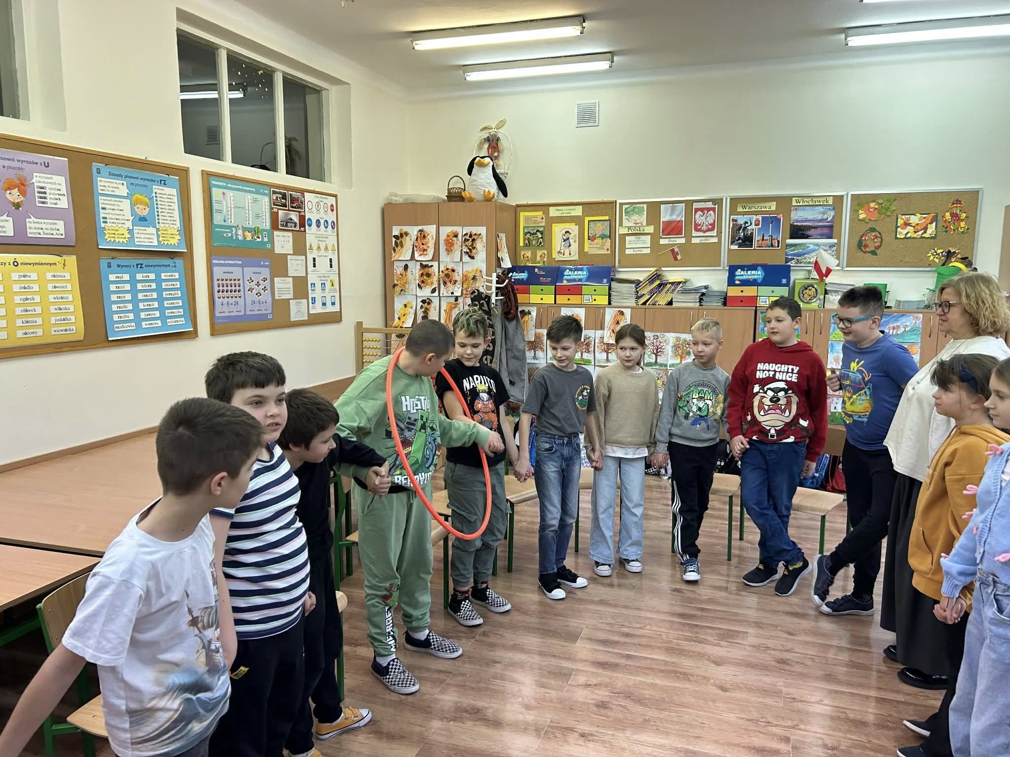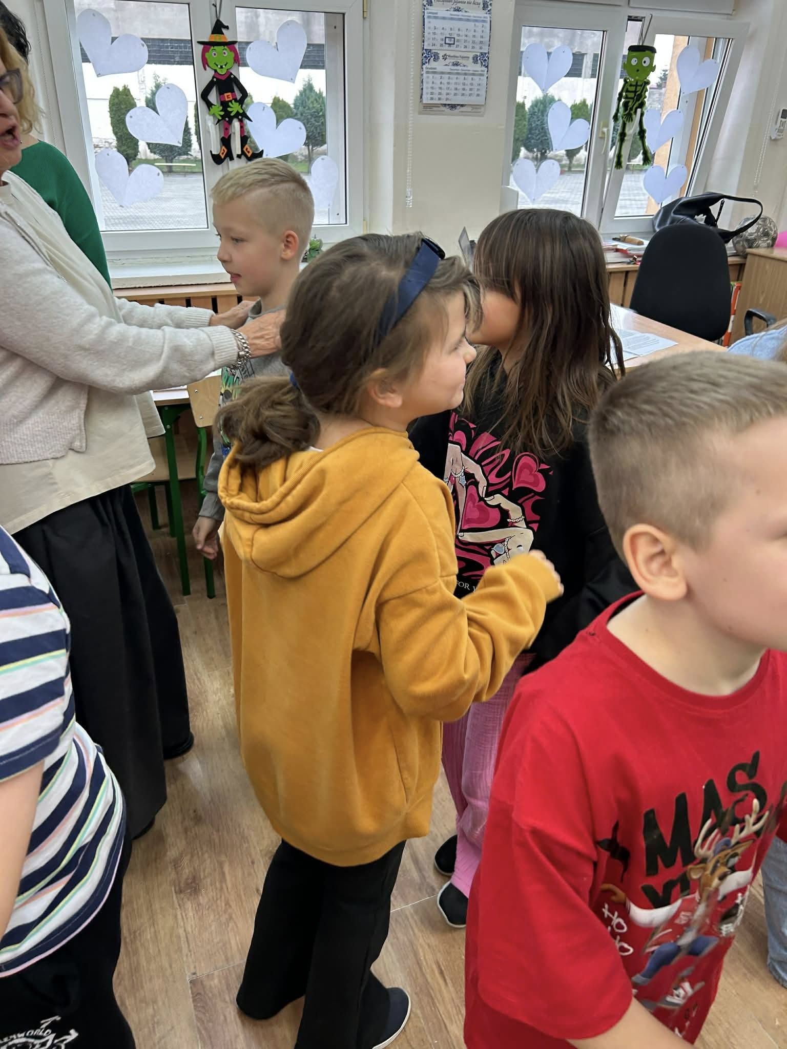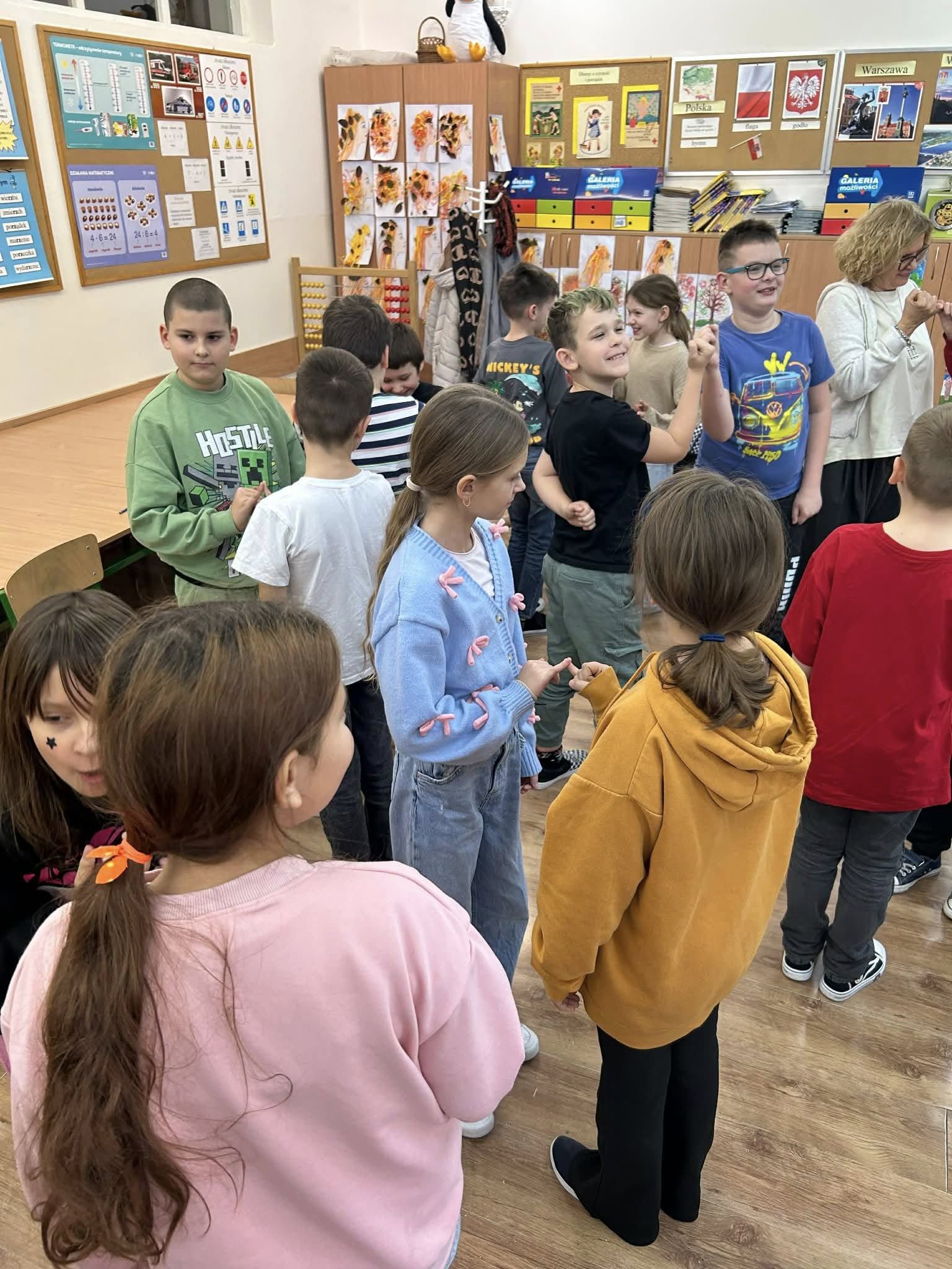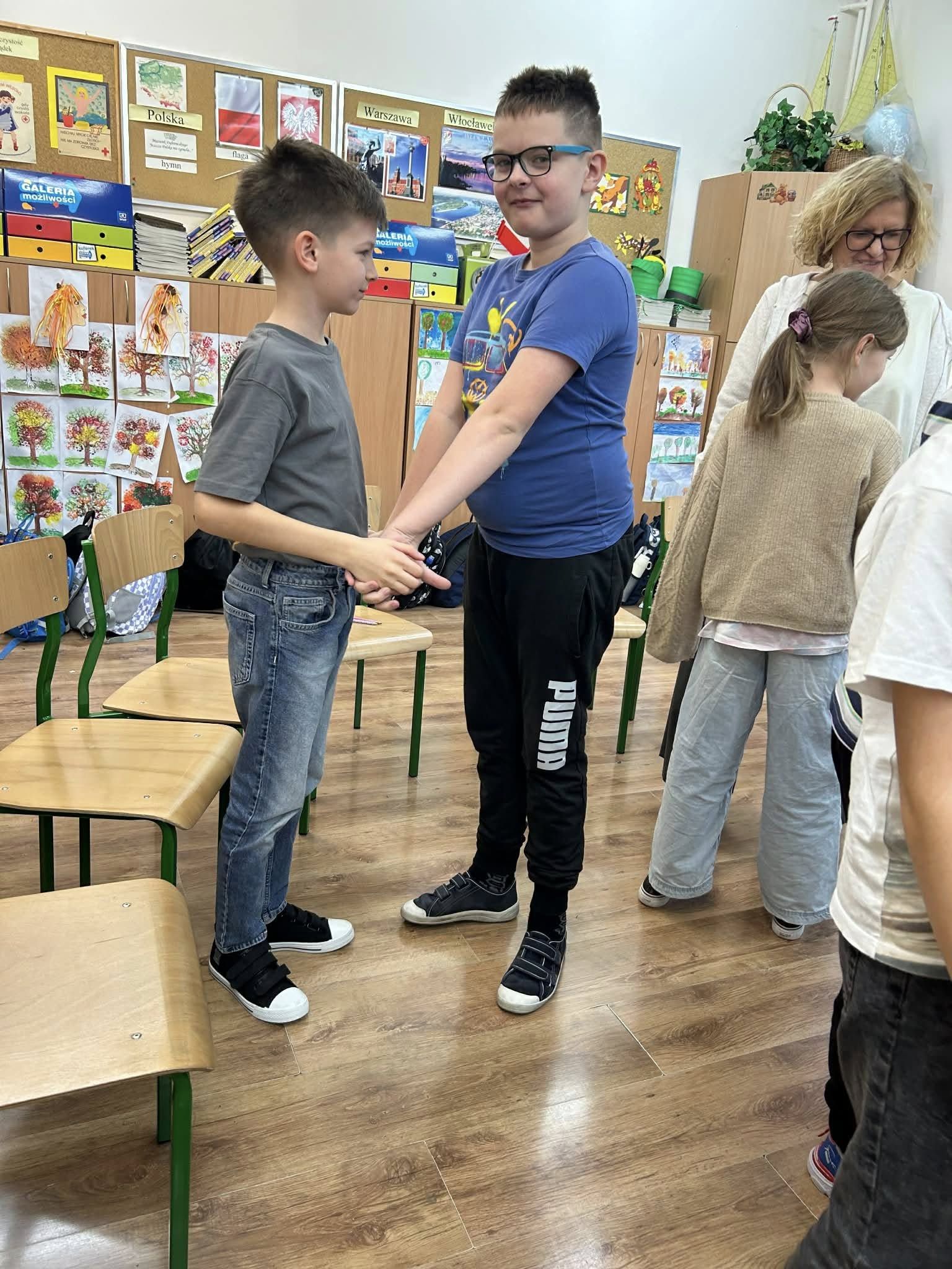 20.11.2025 r. klasa 3 a wzięła udział w zajęciach warsztatowych prowadzonych przez pedagogów szkol. ,p. Eweliną Skucha-Pastucha i p. Joannę Dziedzic. Spotkanie odbyło się w ramach Kampanii społ. ,,Bądź kumplem. Nie dokuczaj”. Oprócz zabaw integrujących zespół klasowy, dzieci rozmawiały o sytuacjach gdy ktoś komuś dokucza, o empatii i radzeniu sobie z trudnymi emocjami. Była zabawa i były bardzo kreatywne wnioski.