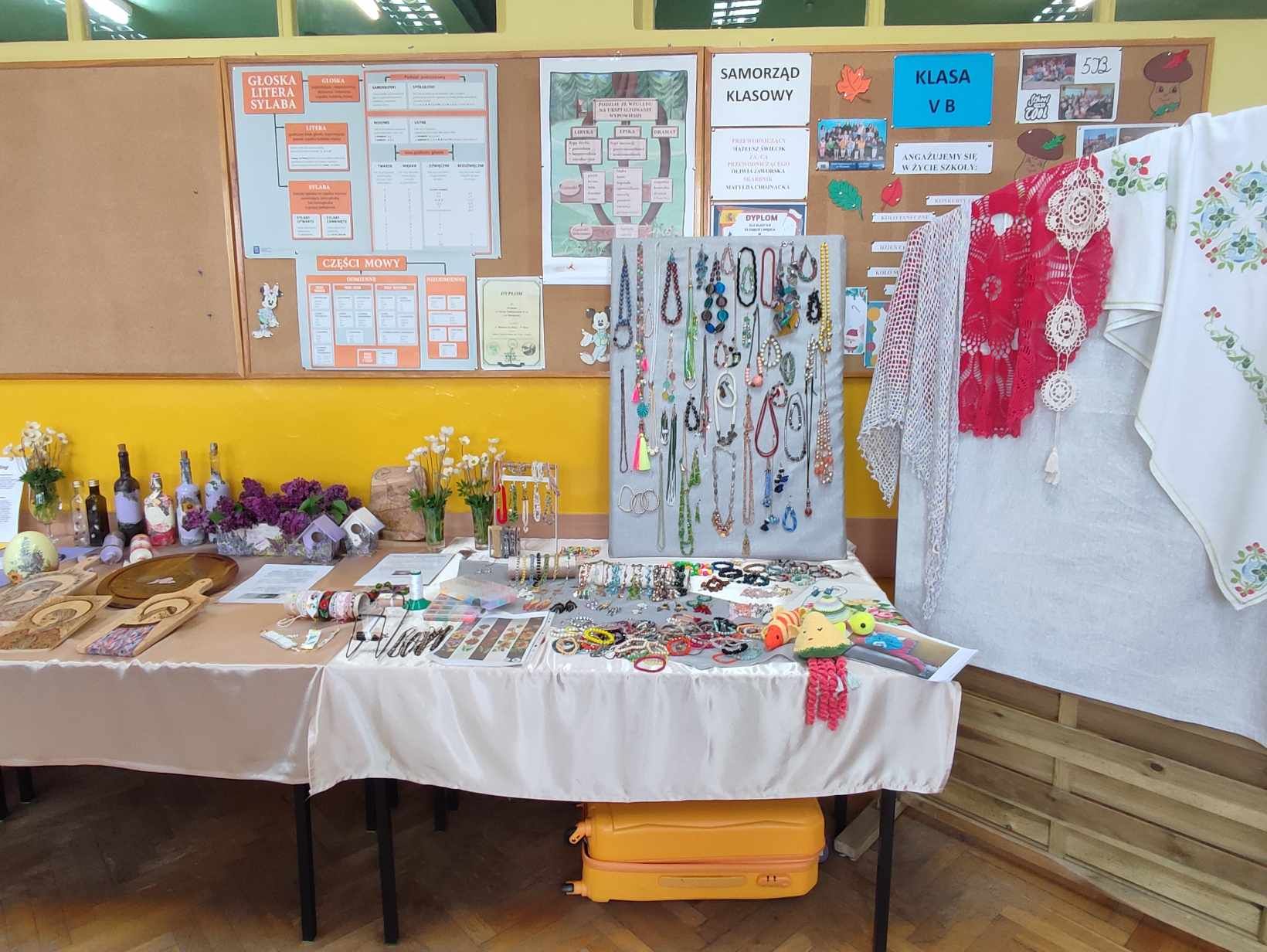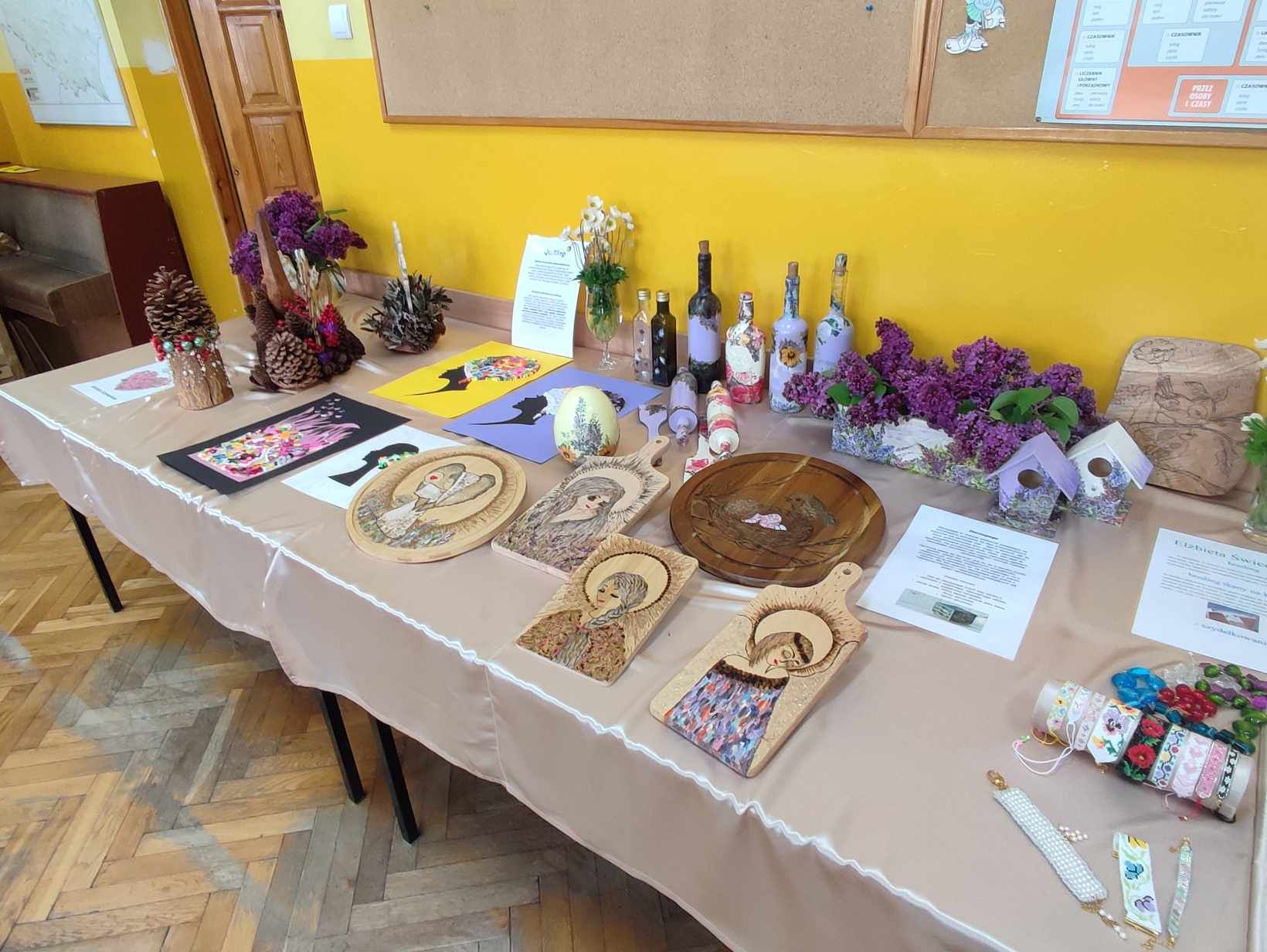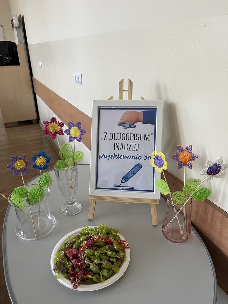 Możnabyło również zobaczyć rękodzieła wykonane przez naszych nauczycieli, prace plastyczne naszych uczniów, wziąć udział w Konkursie Piosenki Angielskiej, spróbować swoich umiejętności w pracy z długopisem 3D, dla zgłodniałych czekał smaczny poczęstunek w szkolnej kawiarence.