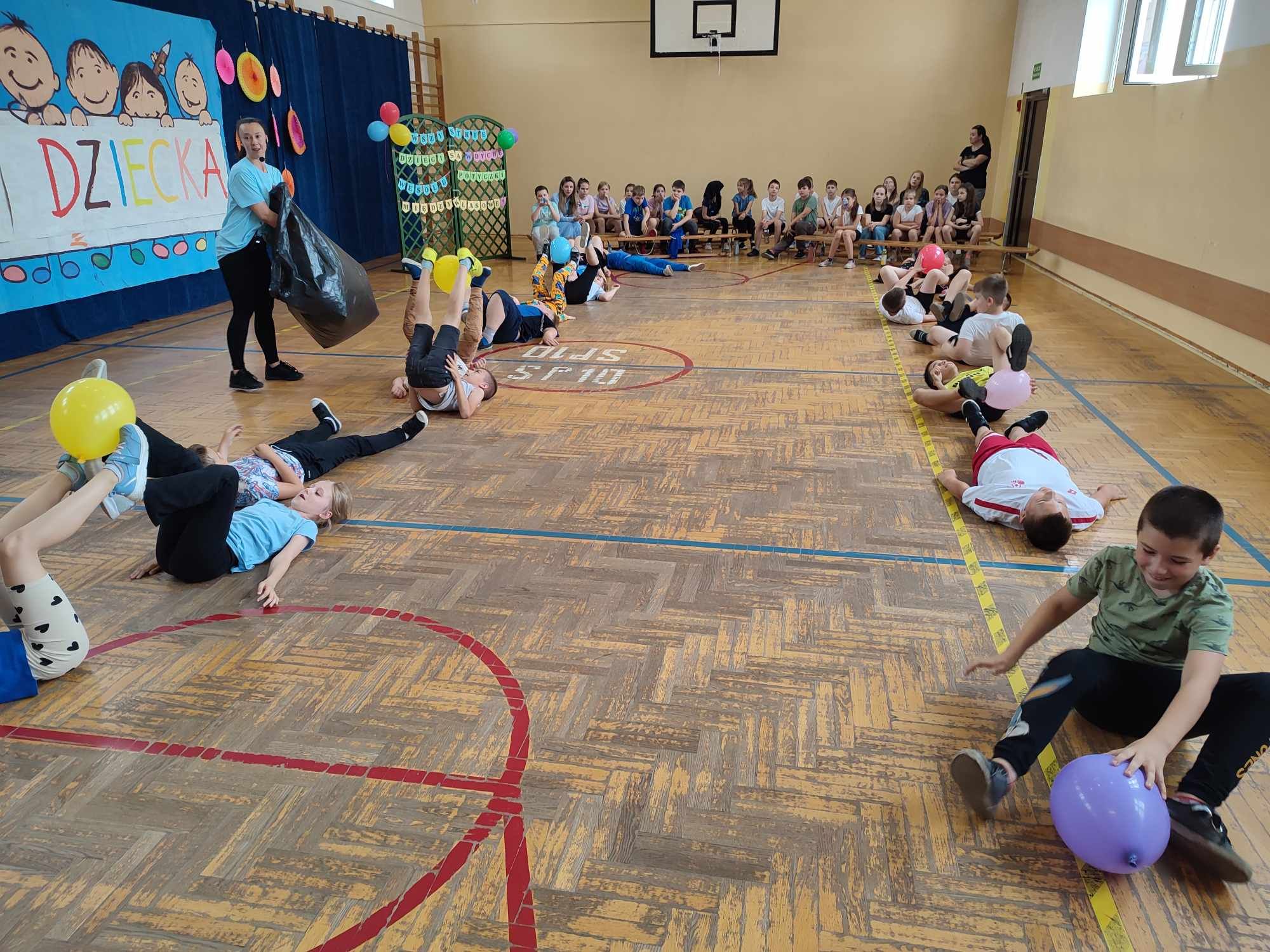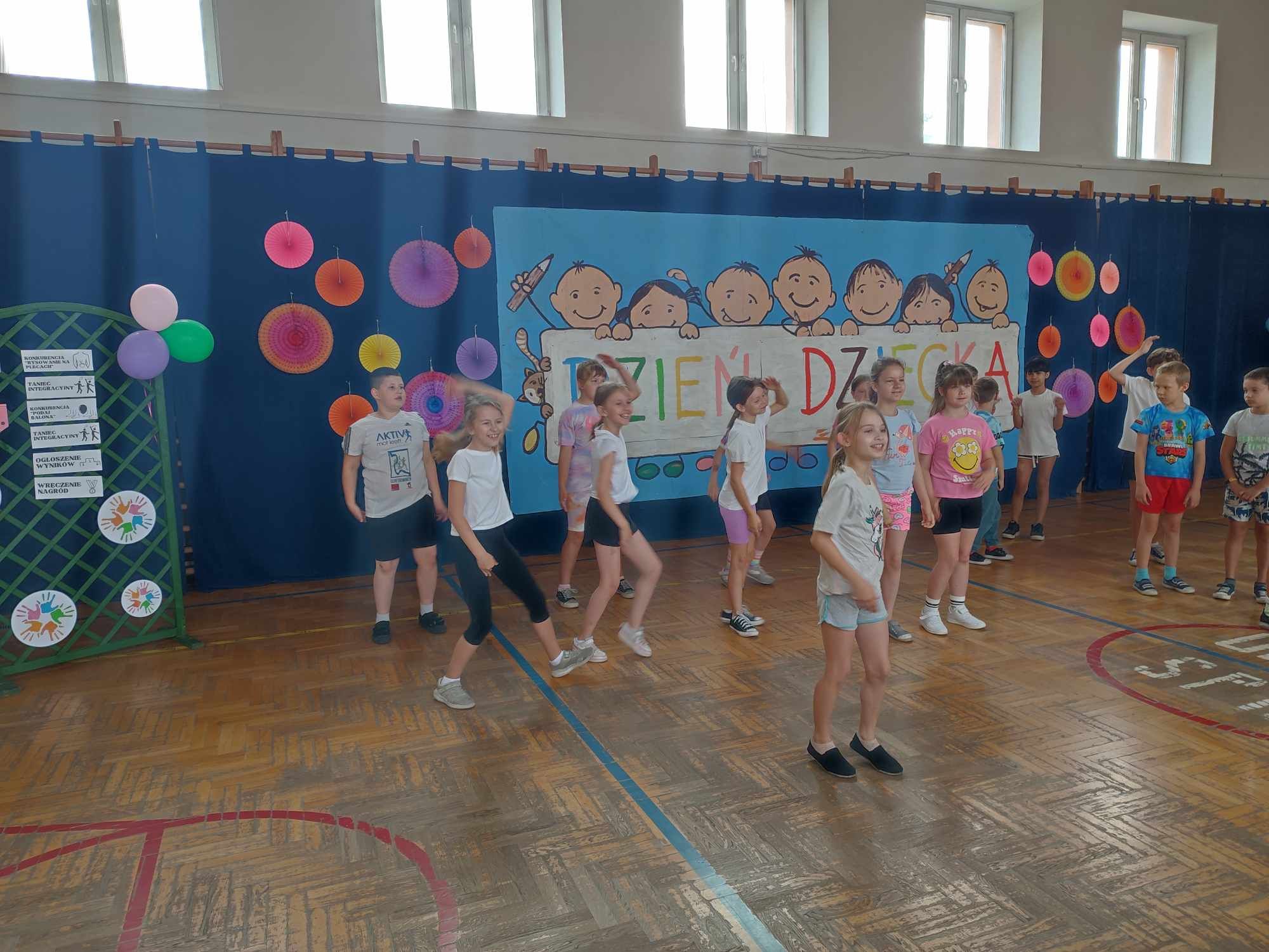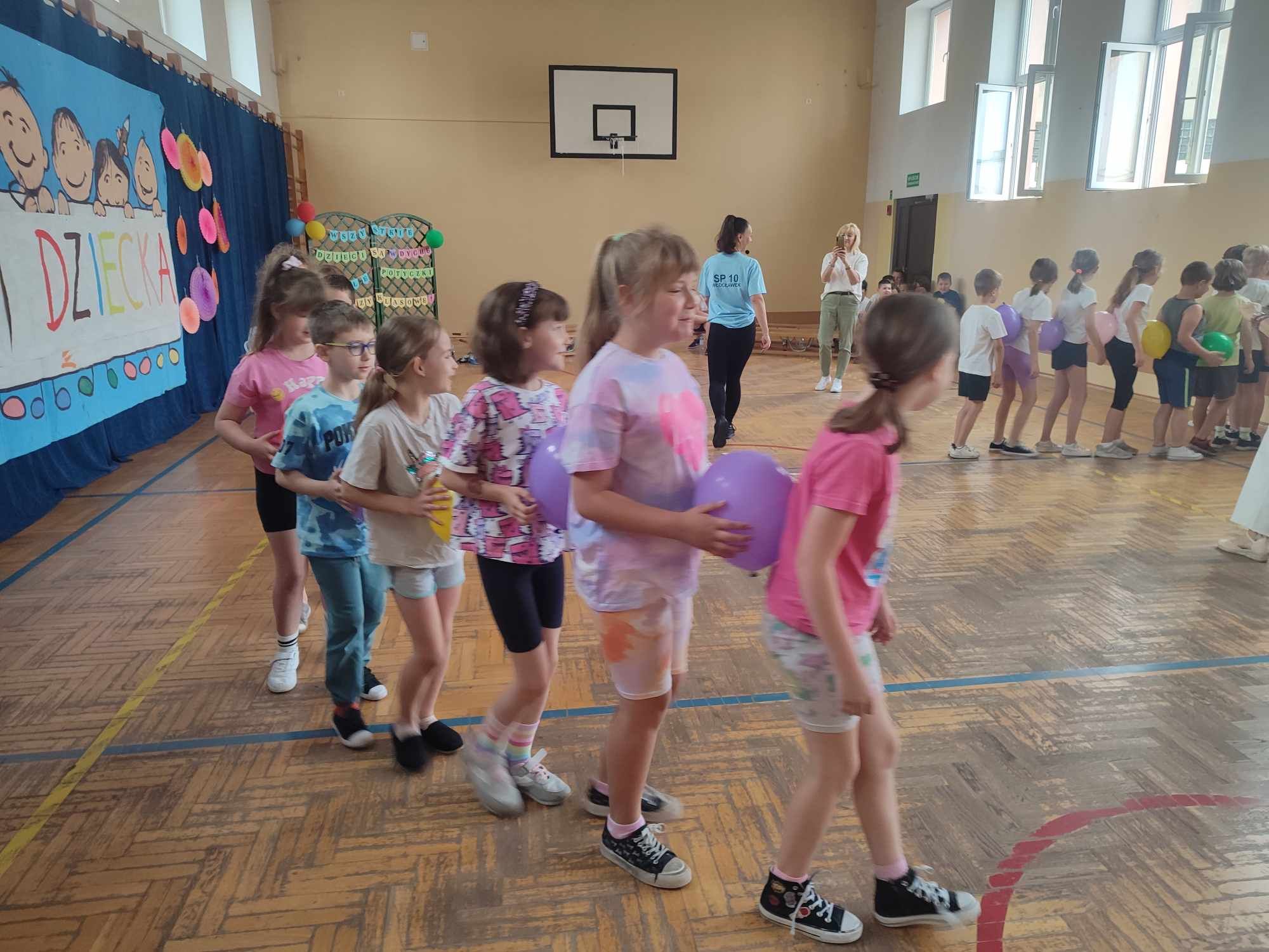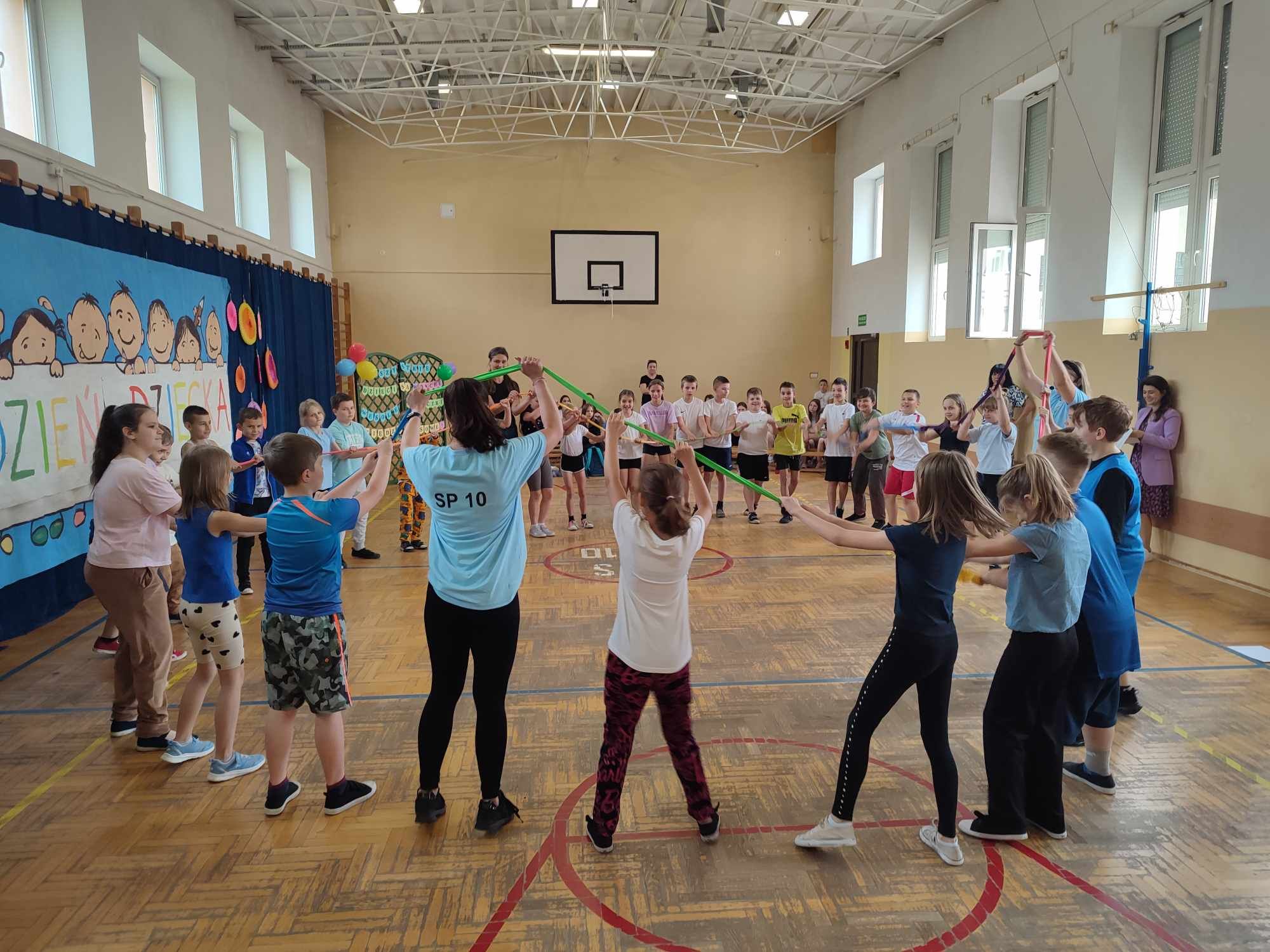 W dniach 3.06 i 4.06 w naszej szkole z okazji Dnia Dziecka odbyły się potyczki międzyklasowe dla klas drugich, trzecich i czwartych pt. „Wszystkie dzieci są w dychę” zorganizowane przez panie Aleksandrę Kalinowską oraz Emilię Konopę. Uczestnicy rywalizowali w kilku konkurencjach sportowych, które wymagały współpracy i zaangażowania. Wszystkie dzieci bawiły się z wielką radością. Na koniec każdy zawodnik został nagrodzony słodkim upominkiem. Serdecznie dziękujemy za współpracę pani Joannie Karwat i pani Dominice Stolcman, a panu Mirosławowi Traczykowi za przepiękną dekorację. Do zobaczenia za rok! ![]()