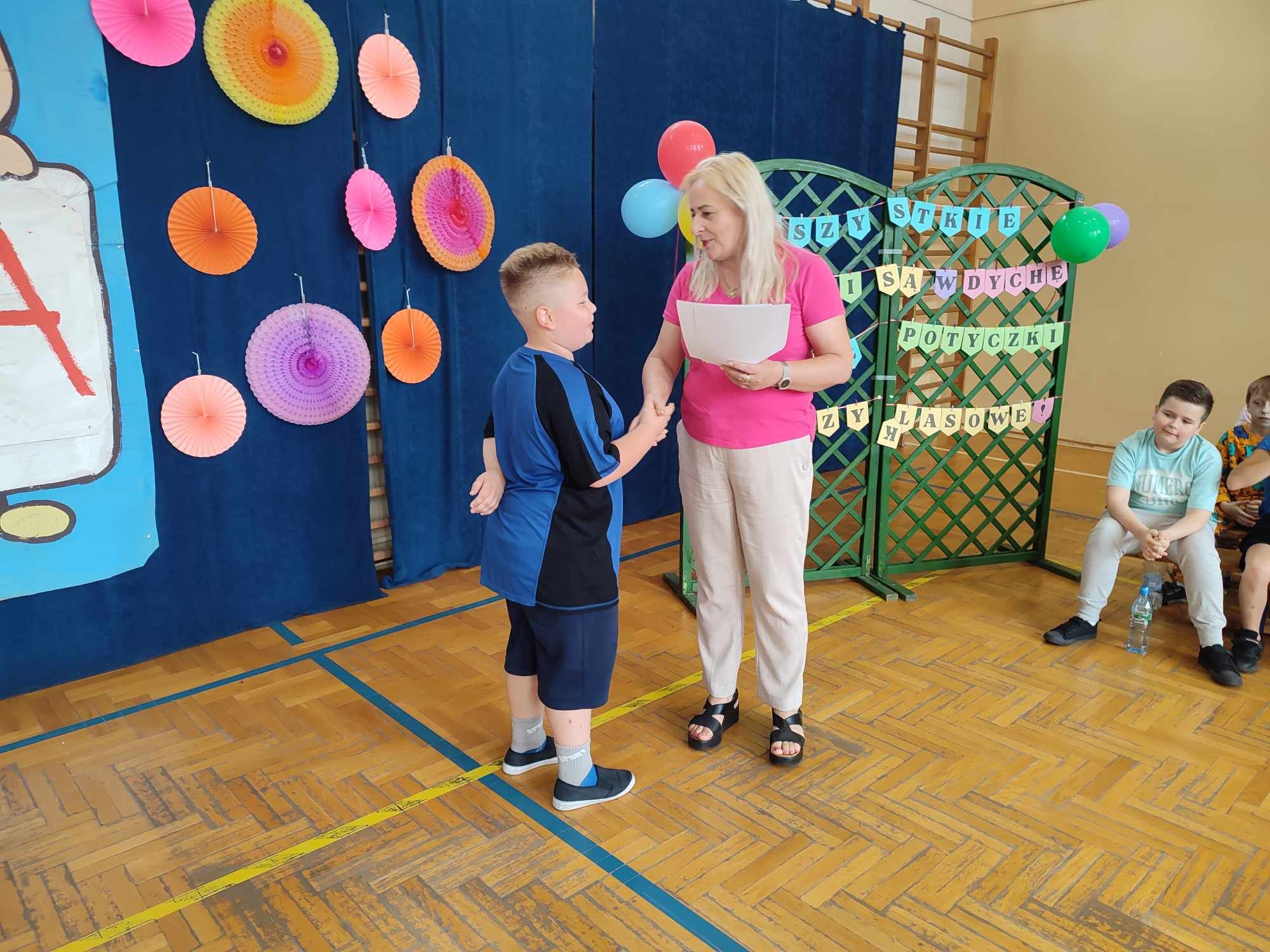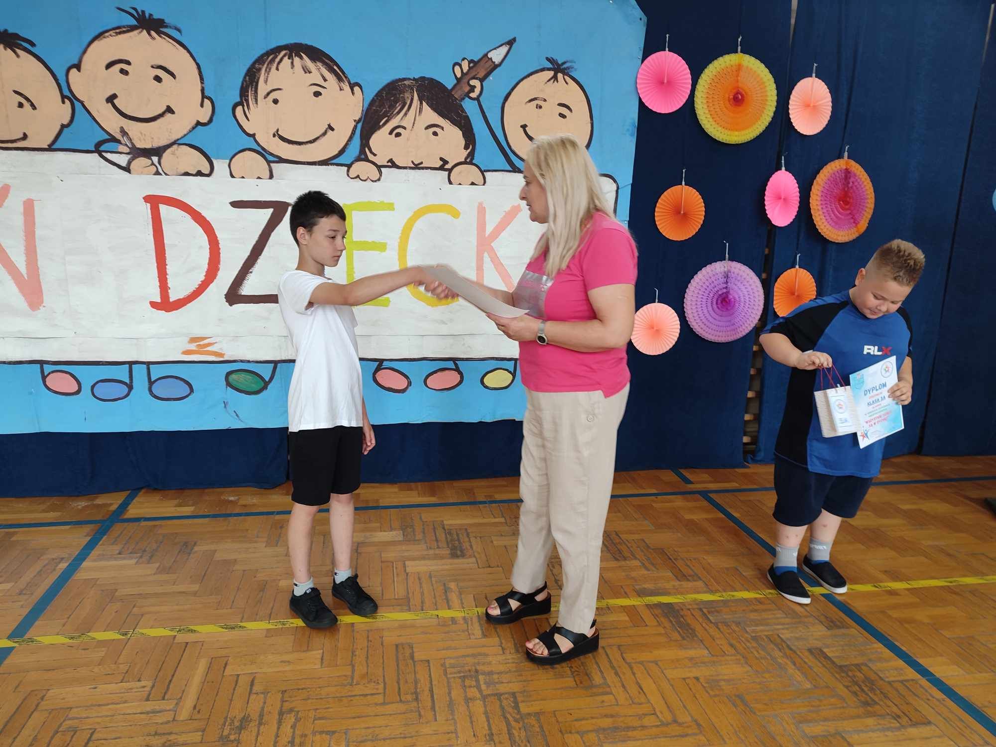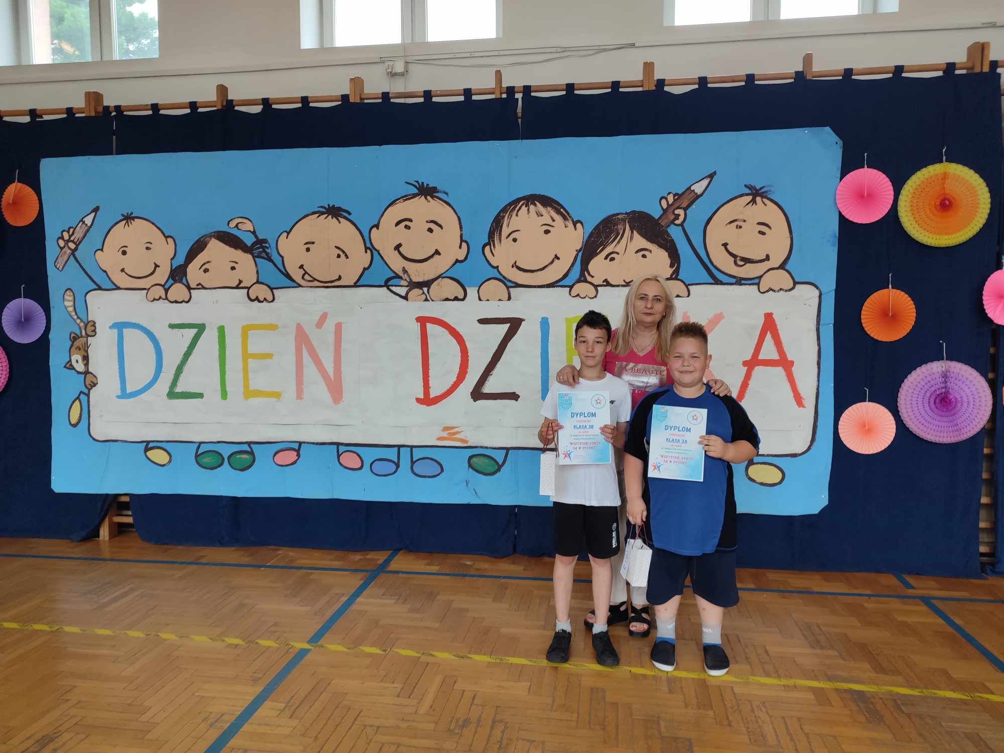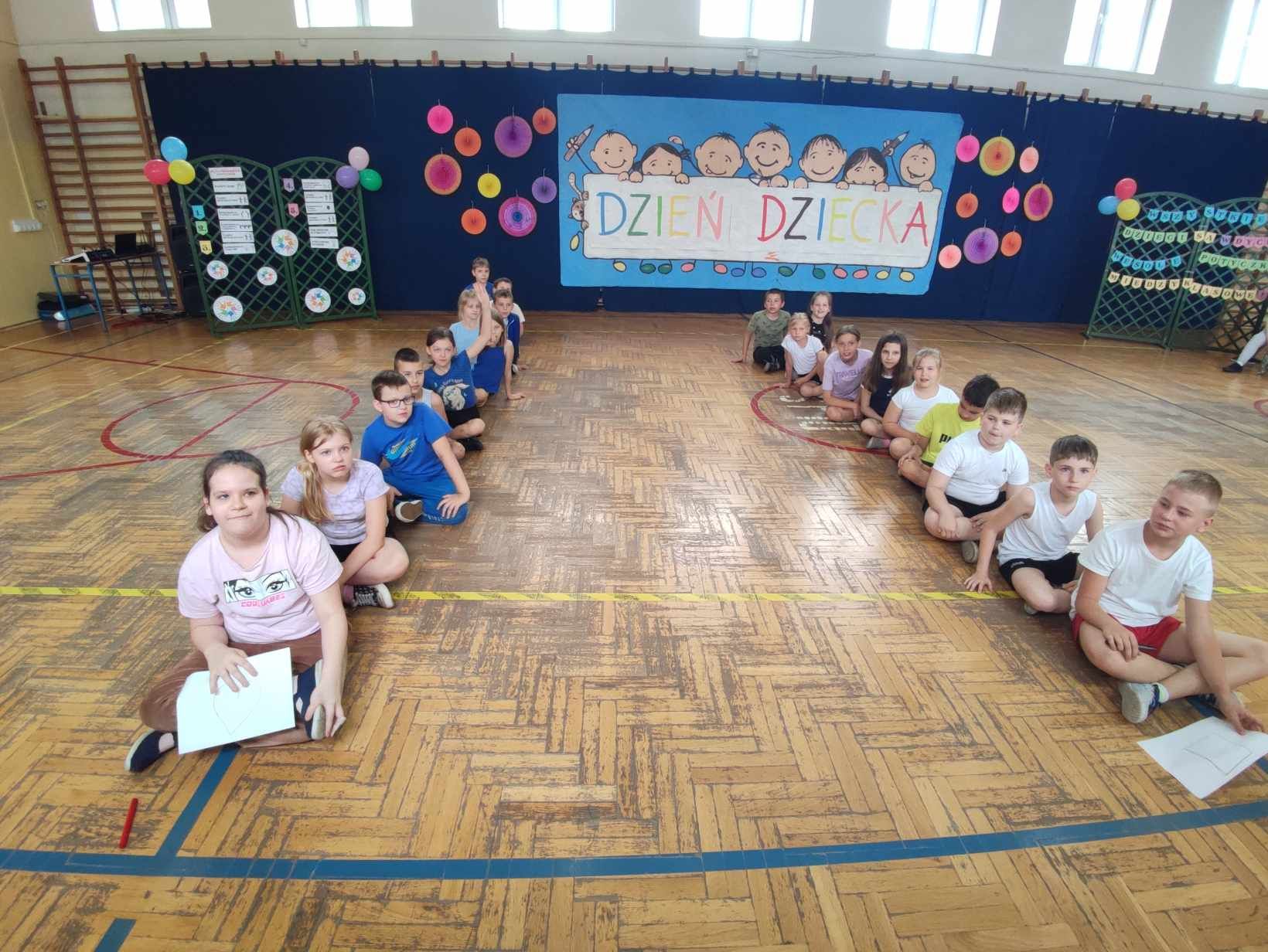 W dniach 3.06 i 4.06 w naszej szkole z okazji Dnia Dziecka odbyły się potyczki międzyklasowe dla klas drugich, trzecich i czwartych pt. „Wszystkie dzieci są w dychę” zorganizowane przez panie Aleksandrę Kalinowską oraz Emilię Konopę. Uczestnicy rywalizowali w kilku konkurencjach sportowych, które wymagały współpracy i zaangażowania. Wszystkie dzieci bawiły się z wielką radością. Na koniec każdy zawodnik został nagrodzony słodkim upominkiem. Serdecznie dziękujemy za współpracę pani Joannie Karwat i pani Dominice Stolcman, a panu Mirosławowi Traczykowi za przepiękną dekorację. Do zobaczenia za rok! ![]()