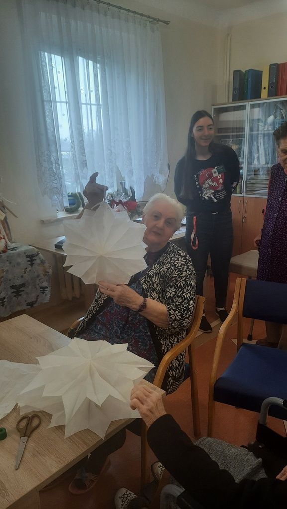 Święta Bożego Narodzenia to czas magiczny, czas wzruszeń i dobrych uczynków. Doskonale o tym pamiętają nasi wolontariusze, którzy z prezentami i poczęstunkiem udali sie do DPS we Włocławku aby wspólnie ze starszym pokoleniem porozmawiać o czasach dawnych, o tradycjach świąt z dawnych lat. Spotkanie było też okazją do wspólnego wykonania ozdób świątecznych. Uczniowie uczyli się od przemiłych osób starszych jak wykonać ozdoby świąteczne ale i my mogliśmy pochwalić się umiejetnościami plastycznymi.