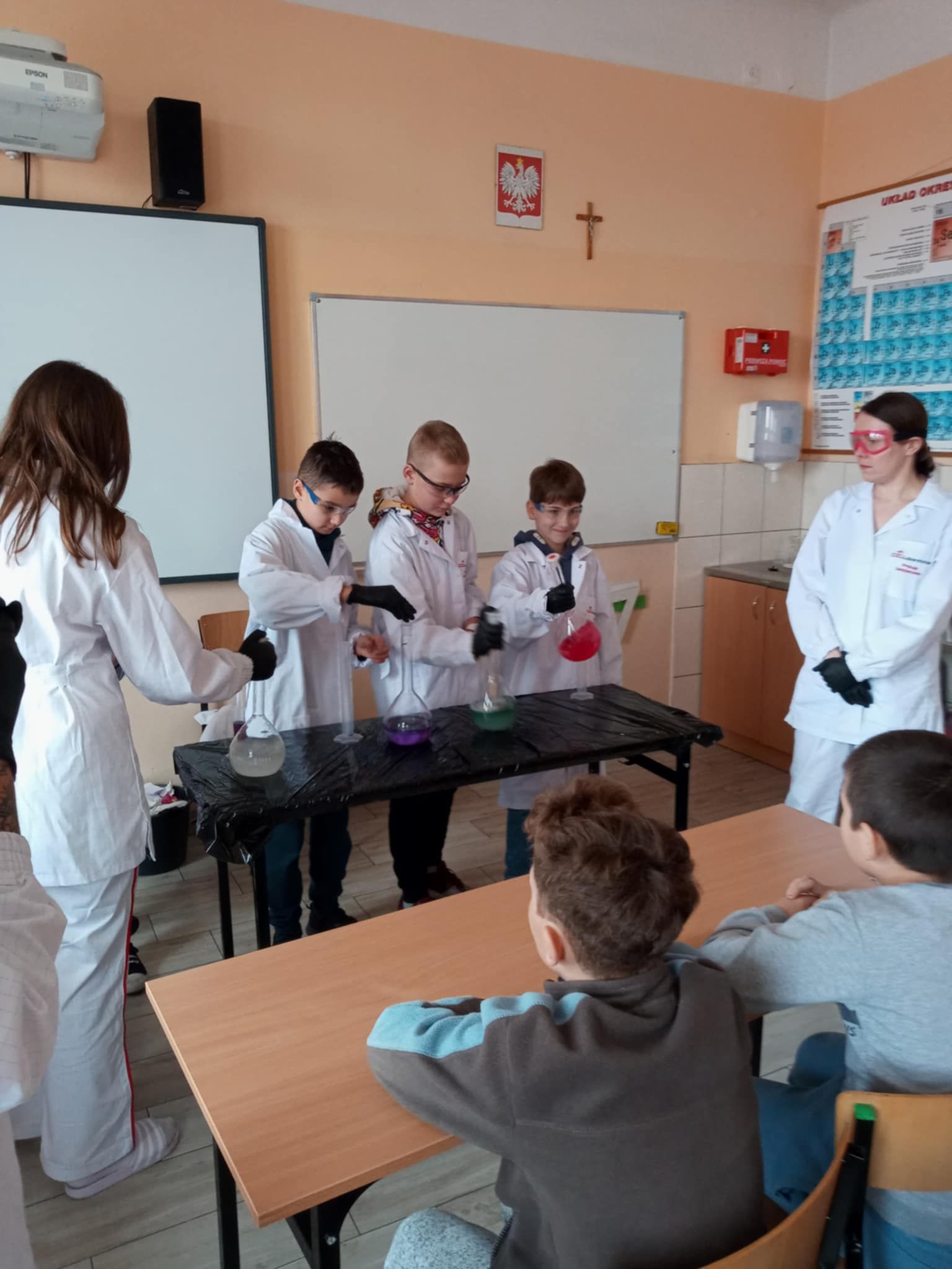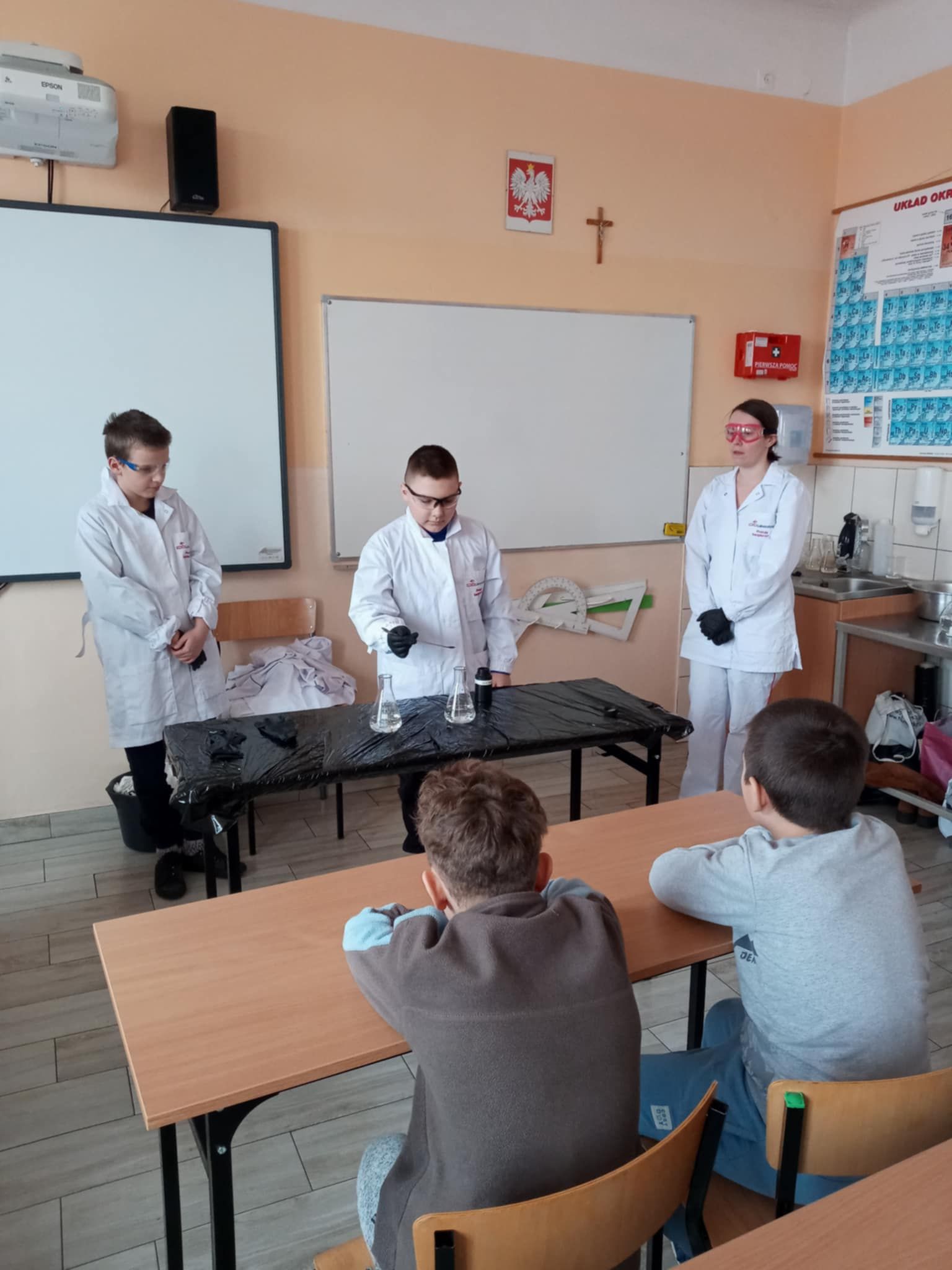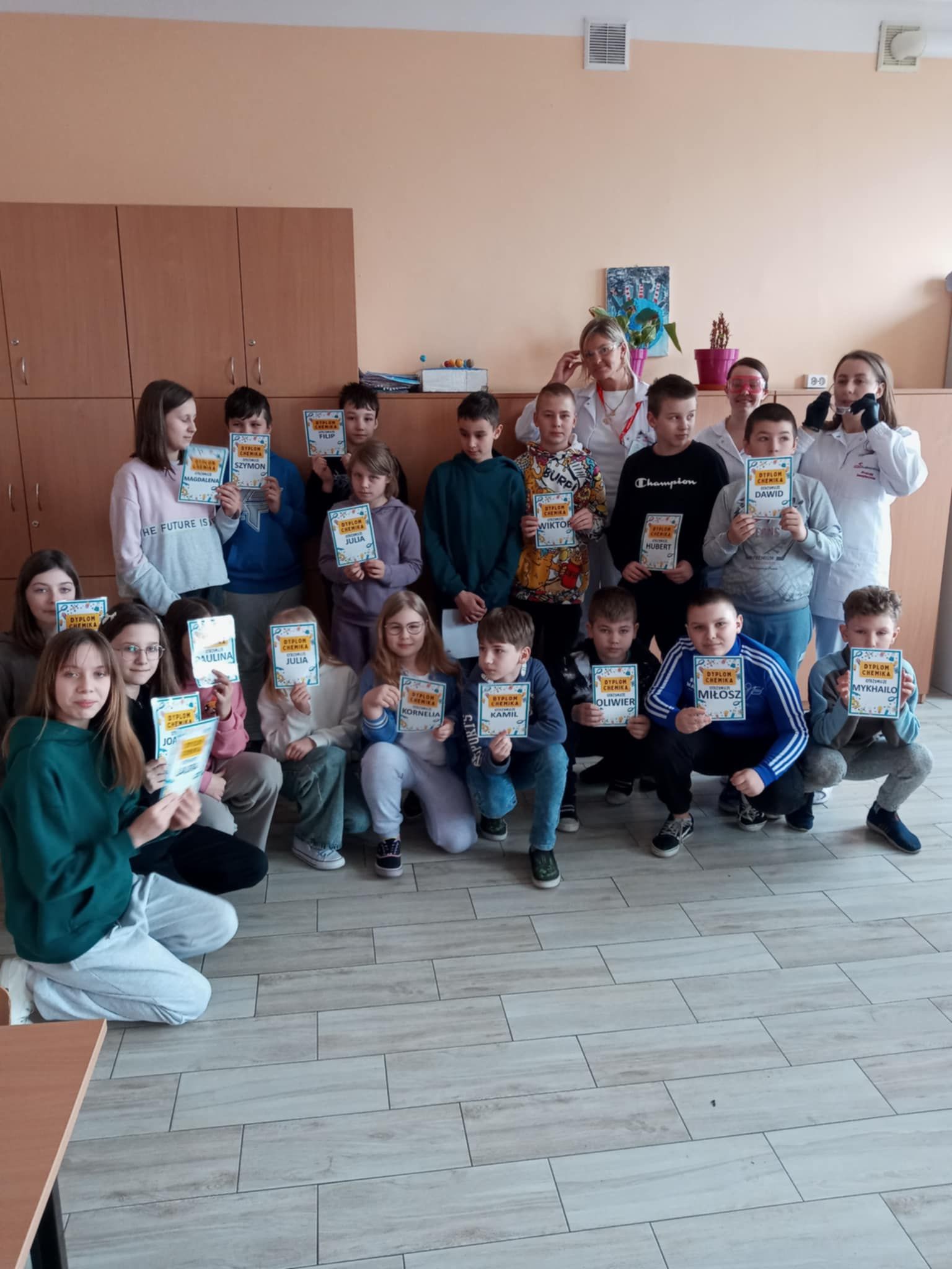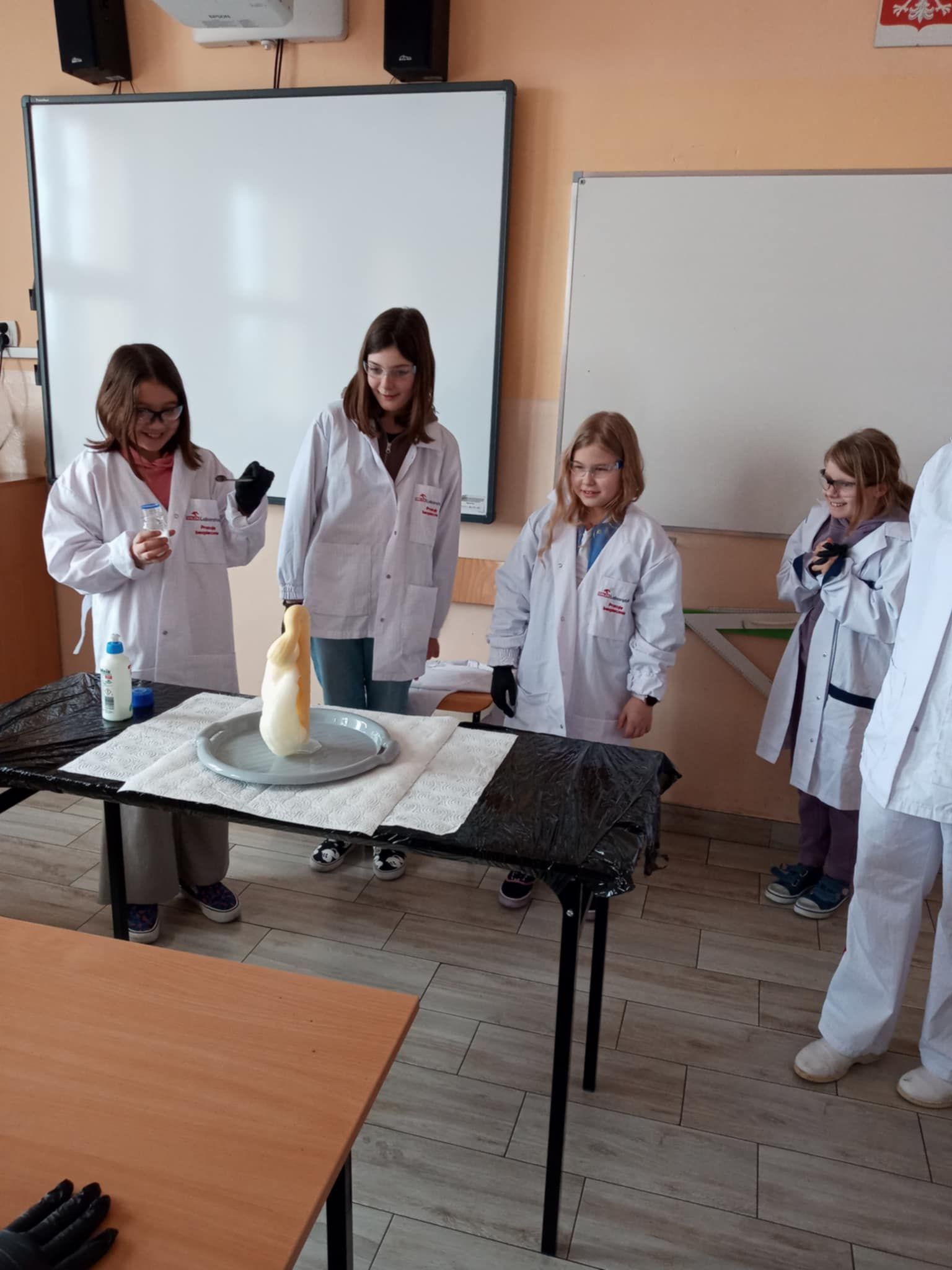 Dnia 25 lutego 2025 r. cztery klasy z naszej szkoły (II a i b oraz IV a i b) miały przyjemność uczestniczenia w warsztatach chemicznych. Pokazy przeprowadziły trzy Panie z Orlen Laboratorium we Włocławku w ramach programu „Orlen Pasja”. Były doświadczenia, dymy, kolorowe płyny, a przede wszystkim „płonące dłonie”. Wszyscy uczniowie doskonale się bawili. Żegnając się zaprosili Panie na kolejne spotkanie. Mamy nadzieję, że zaproszenie zostanie przyjęte. Czekamy z niecierpliwością.
