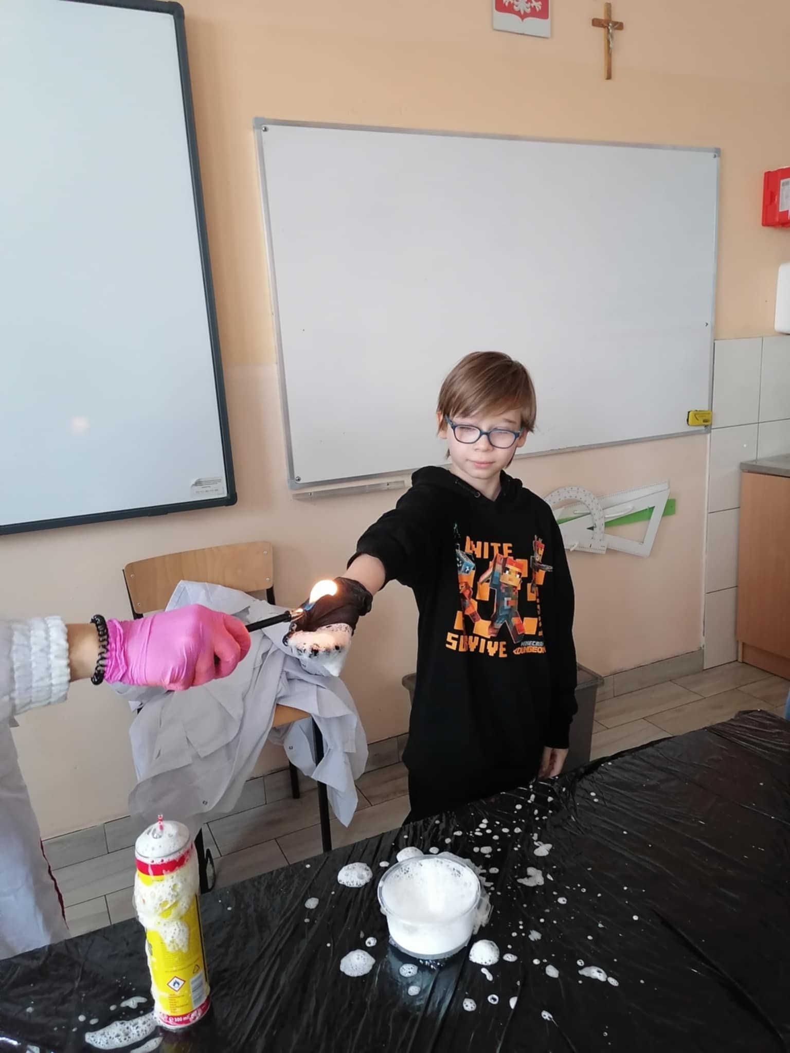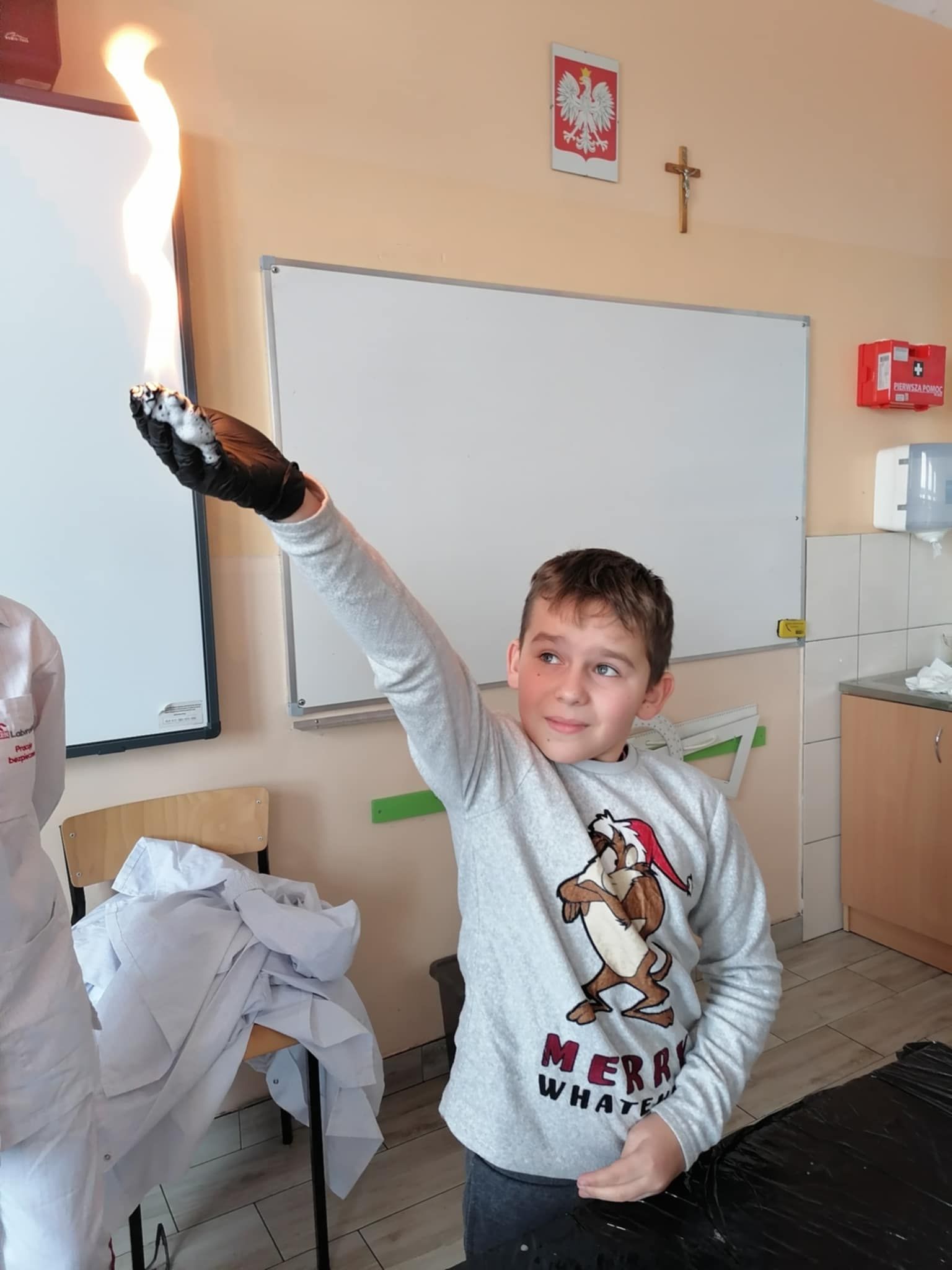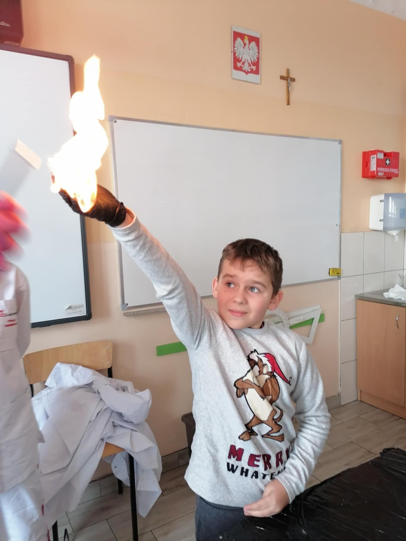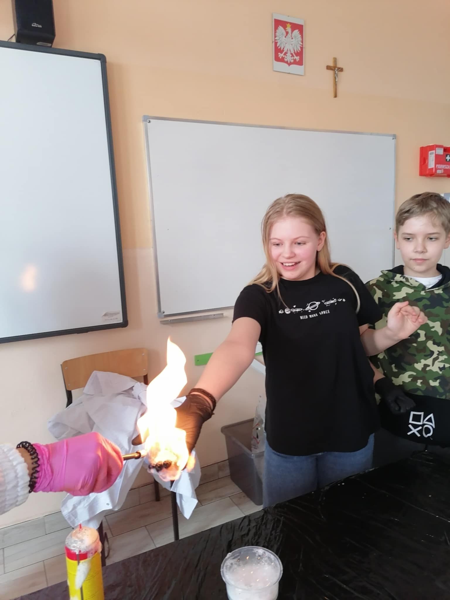 Dnia 25 lutego 2025 r. cztery klasy z naszej szkoły (II a i b oraz IV a i b) miały przyjemność uczestniczenia w warsztatach chemicznych. Pokazy przeprowadziły trzy Panie z Orlen Laboratorium we Włocławku w ramach programu „Orlen Pasja”. Były doświadczenia, dymy, kolorowe płyny, a przede wszystkim „płonące dłonie”. Wszyscy uczniowie doskonale się bawili. Żegnając się zaprosili Panie na kolejne spotkanie. Mamy nadzieję, że zaproszenie zostanie przyjęte. Czekamy z niecierpliwością.