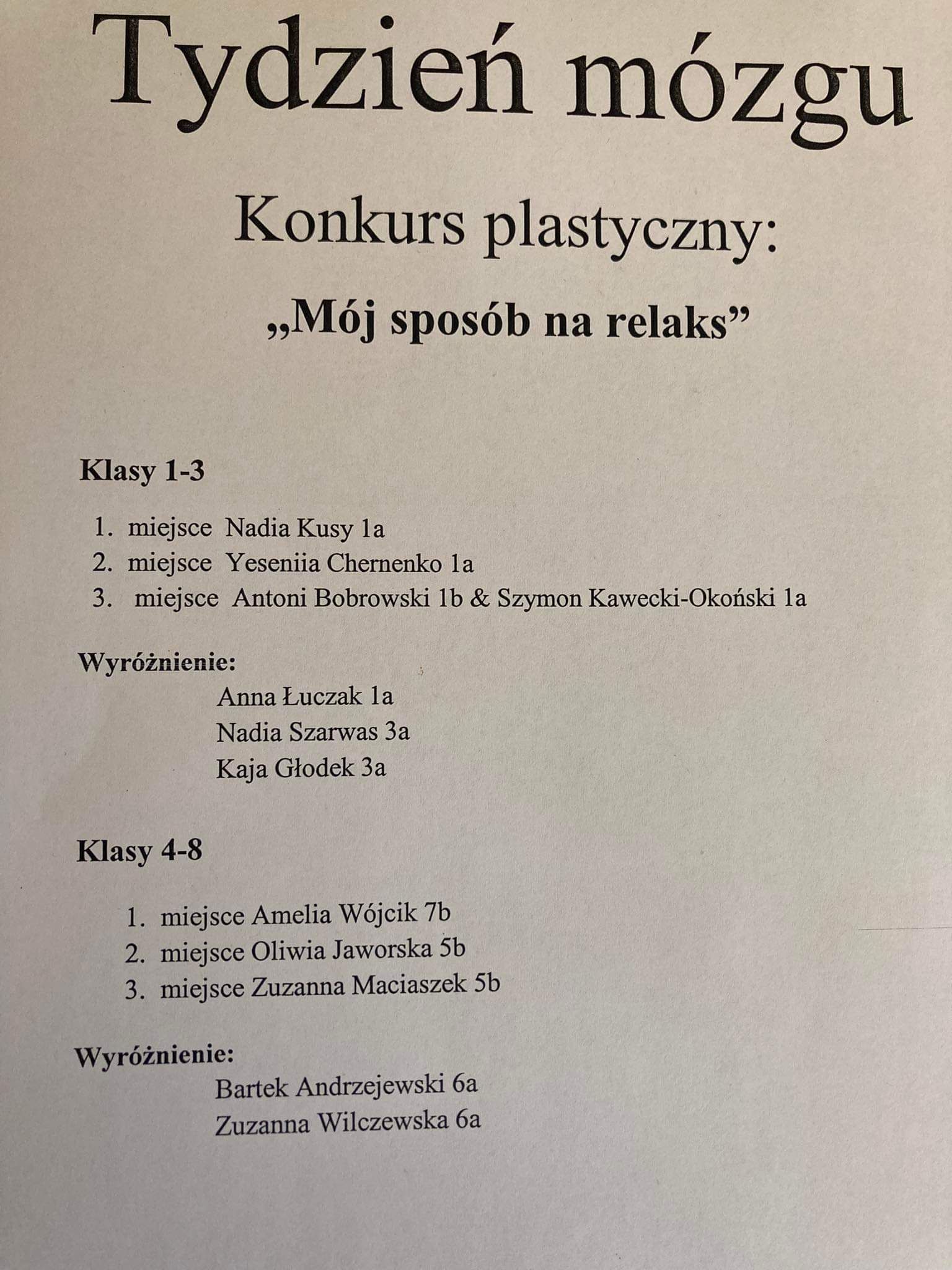 Wyniki konkursu ,,Mój sposób na relaks"