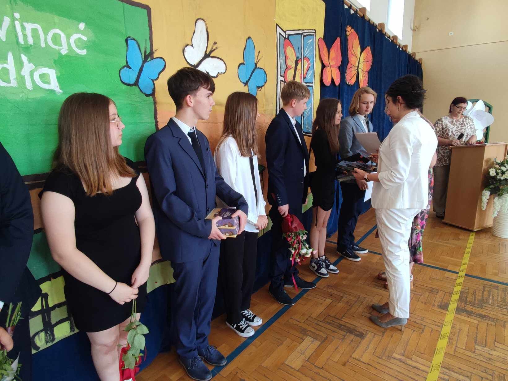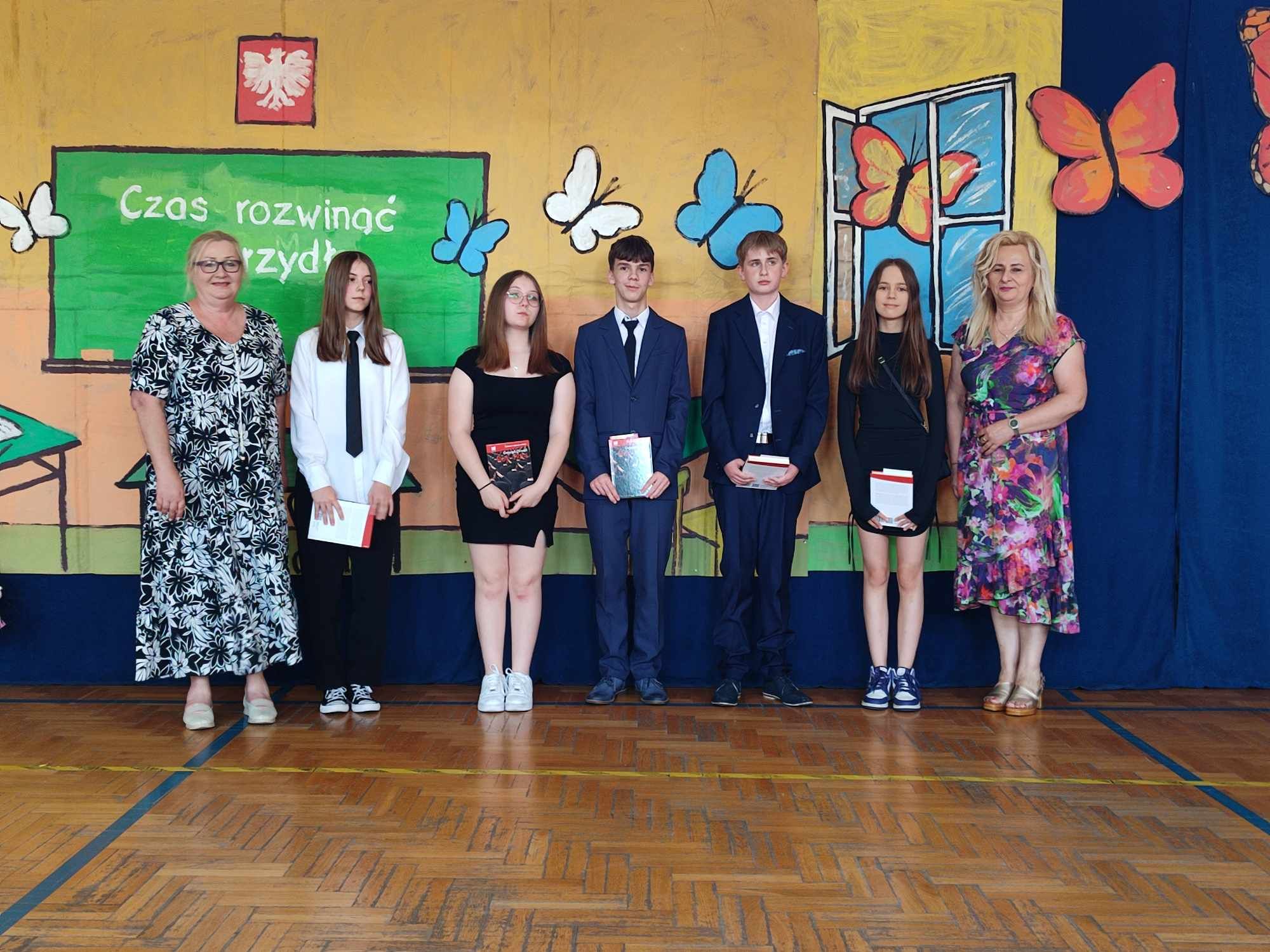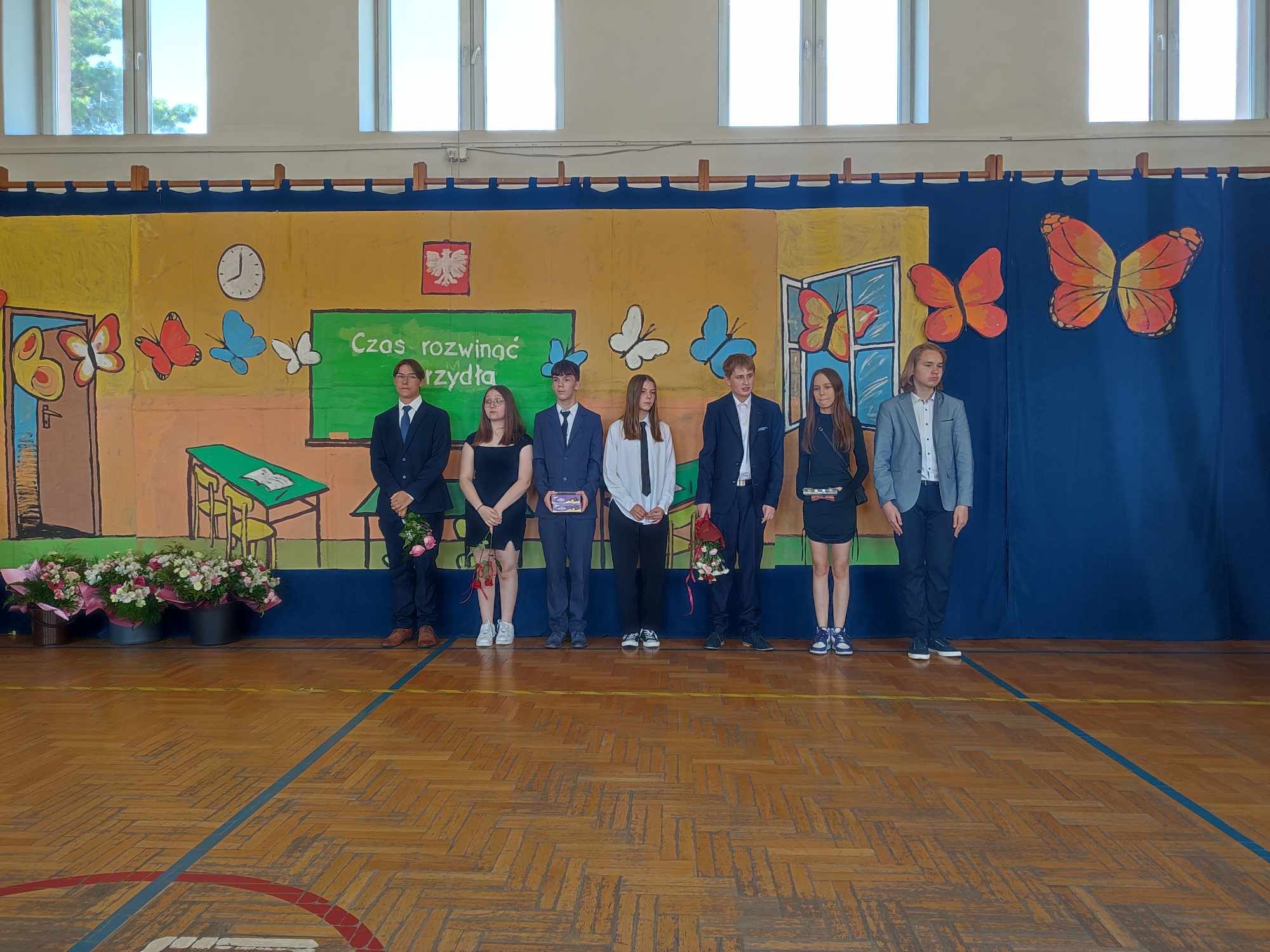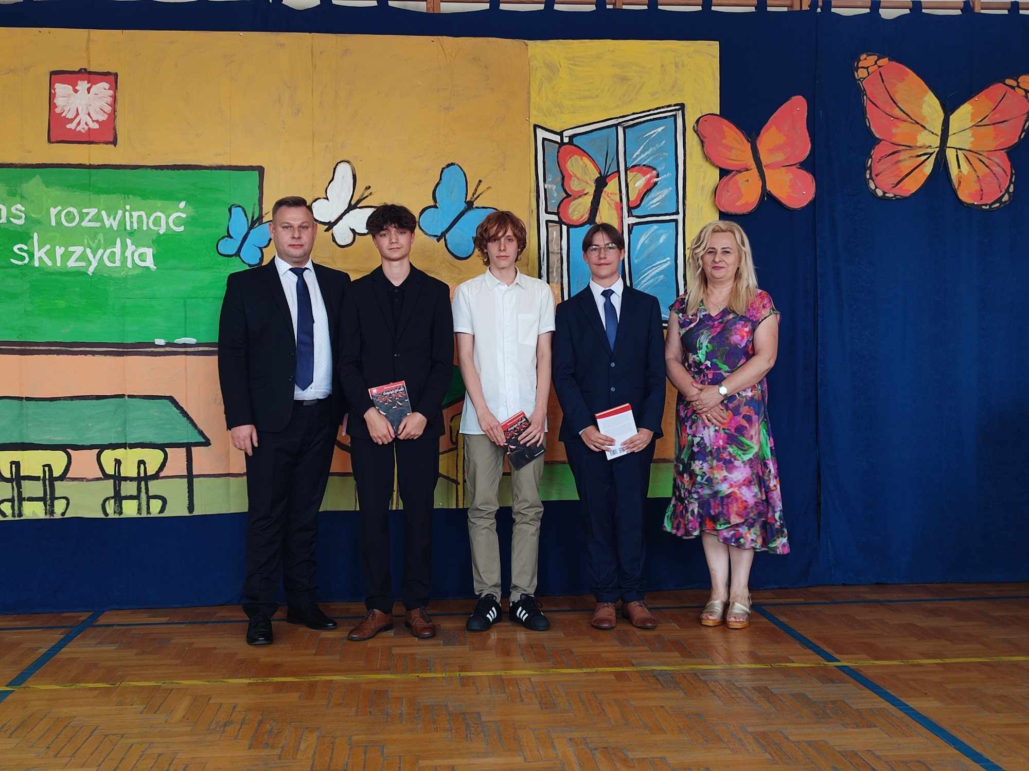 Dziś w naszej szkole odbyło się uroczyste zakończenie roku szkolnego klas VIII. Wydarzenie rozpoczęło się uroczystym ślubowaniem absolwentów, następnie uczniowie klas VIII zaprezentowali część artystyczną. Po krótkim występie nastąpiło wręczanie dyplomów oraz nagród. Najważniejszą nagrodą przyznawaną w naszej szkole są medale: