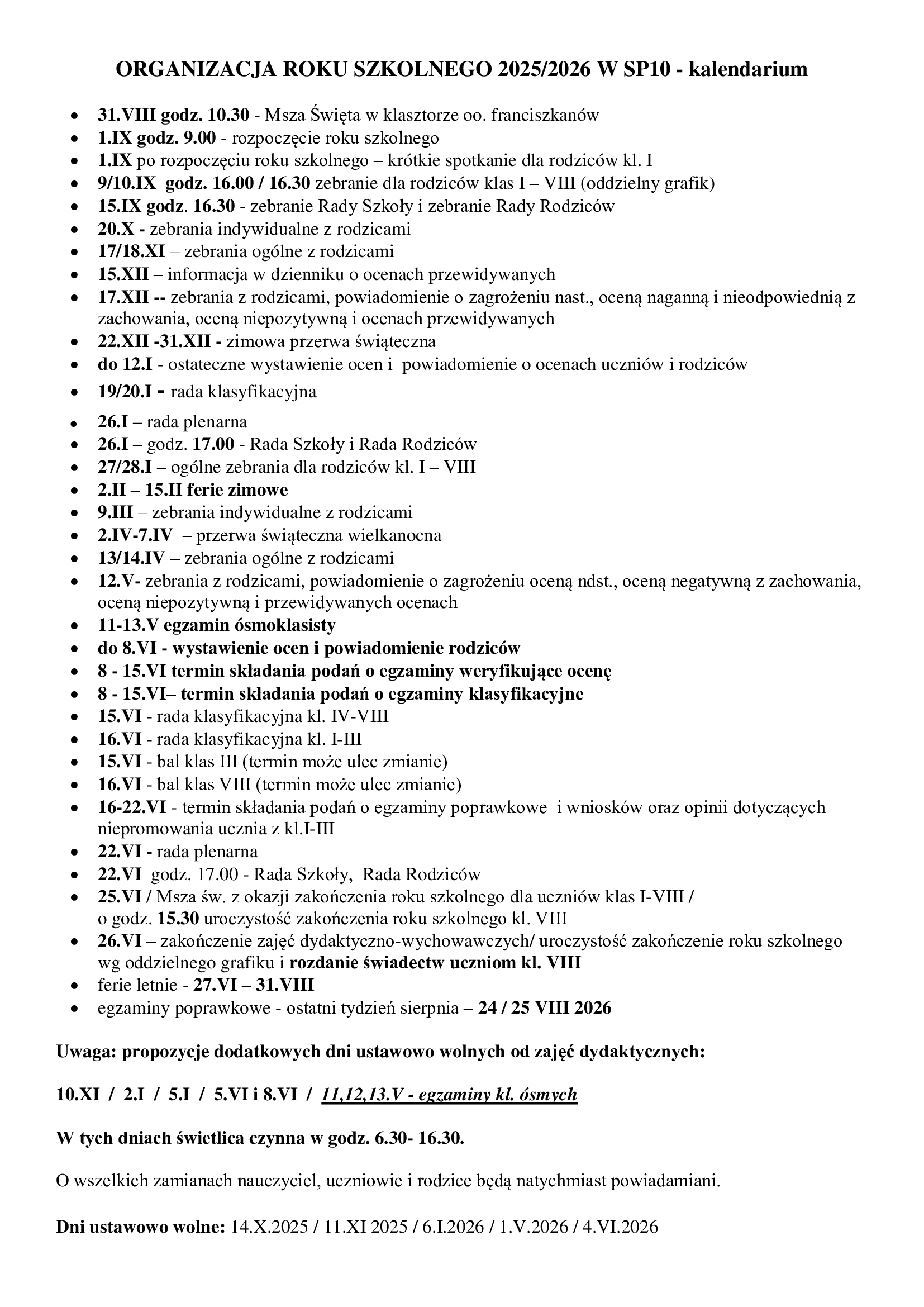 | Organizacja pracy szkoły 2025/2026 |