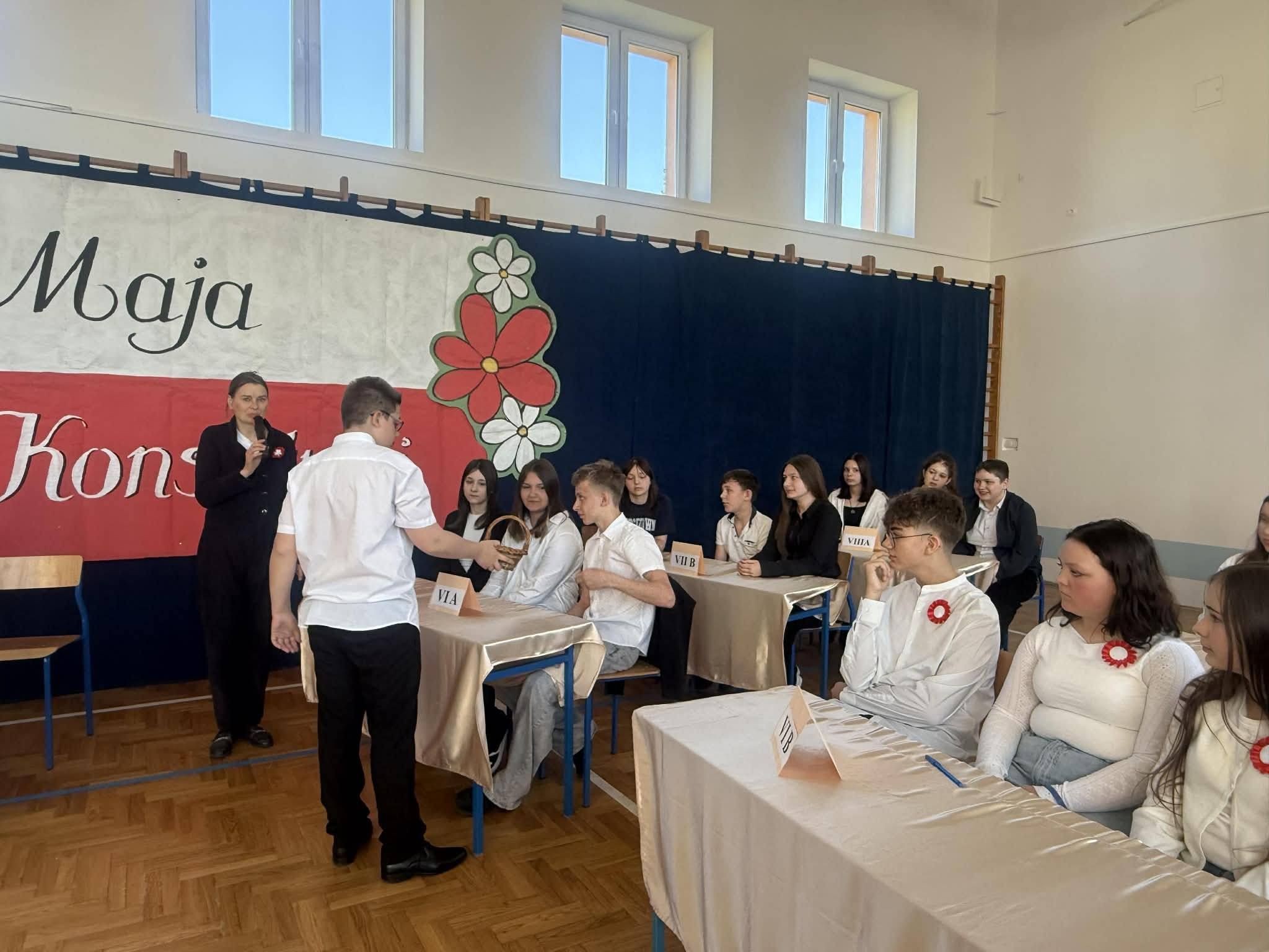 28 kwietnia w naszej szkole odbył się konkurs historyczny pt. „Co wiem o Konstytucji 3 Maja?”, którego celem było poszerzenie wiedzy uczniów na temat pierwszej w Europie i drugiej na świecie konstytucji. Uczestnicy-uczniowie z klas 6-8 musieli wykazać się znajomością okoliczności uchwalenia Konstytucji 3 maja 1791 roku, jej twórców oraz najważniejszych postanowień. Konkurs przebiegał w miłej atmosferze i wzbudził duże zainteresowanie wśród uczniów. Dzięki udziałowi w konkursie uczniowie pogłębili swoją wiedzę historyczną oraz rozwinęli postawy patriotyczne.
