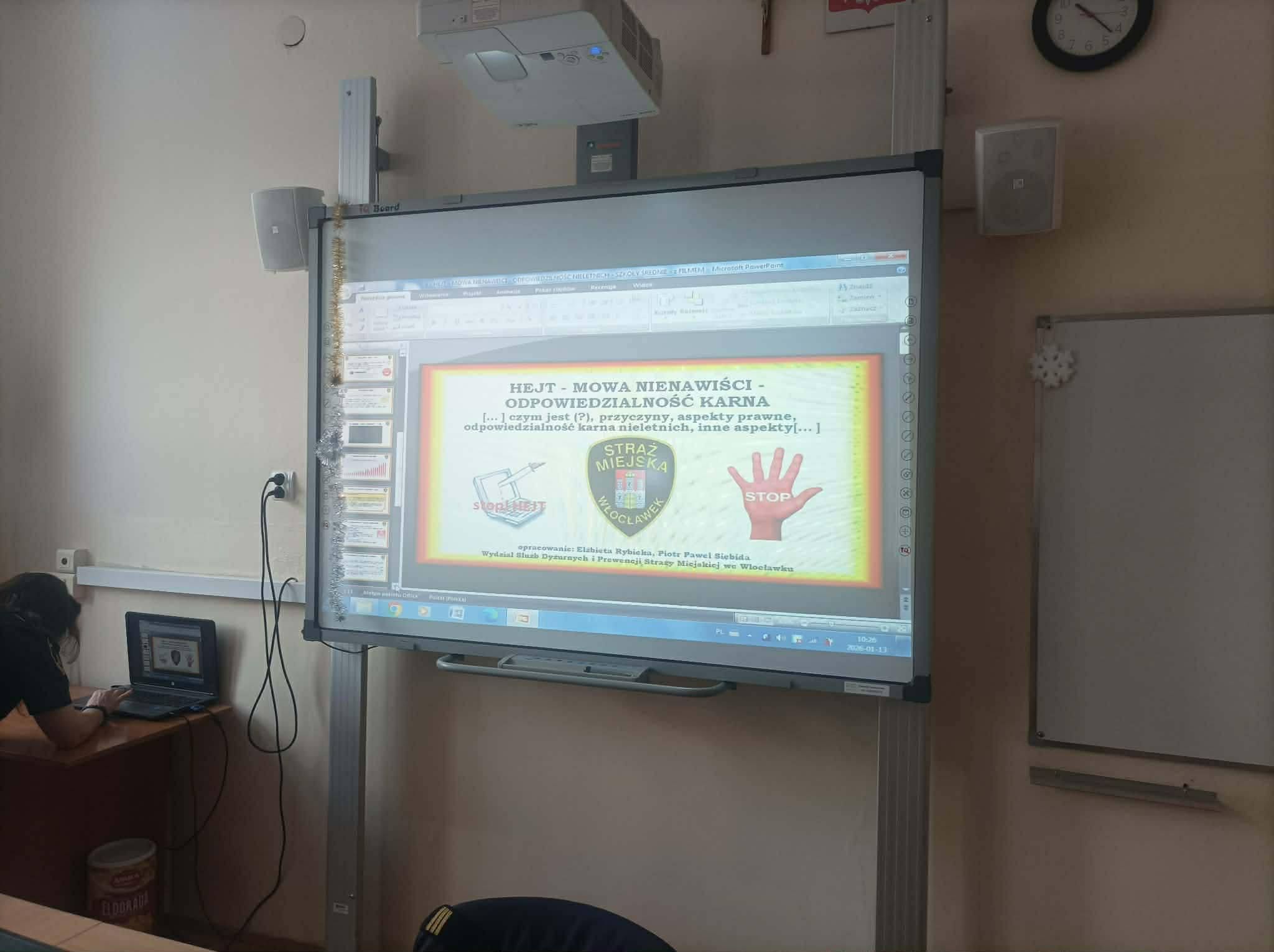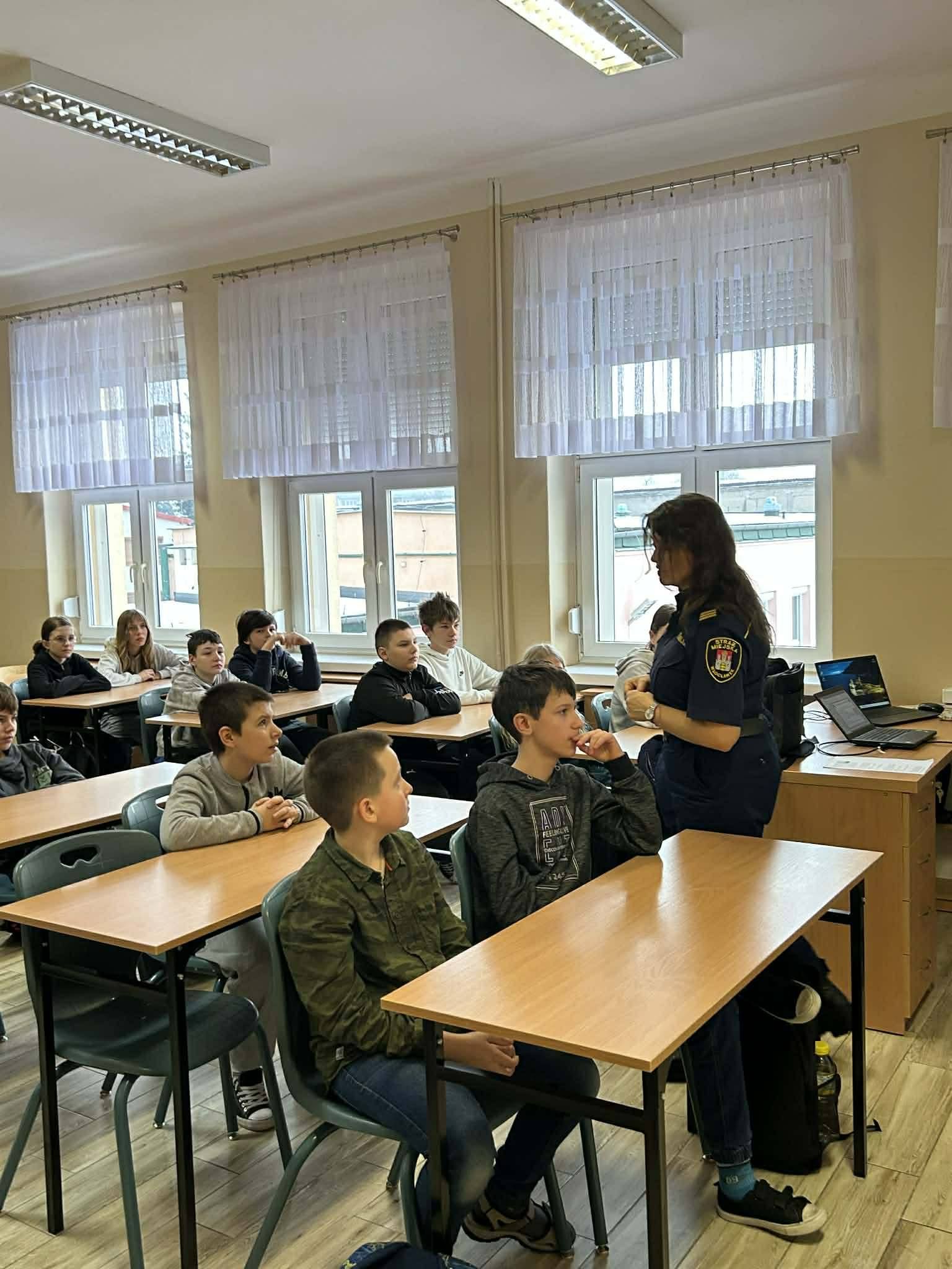Od początku stycznia klasy 5,6 i 7 spotykały się z p.Elzbietą Rybicką ze Straży Miejskiej na zajęciach poświęconych odpowiedzialności karnej nieletnich, cyberzagrożeniom i bezpieczeństwu w czasie ferii.