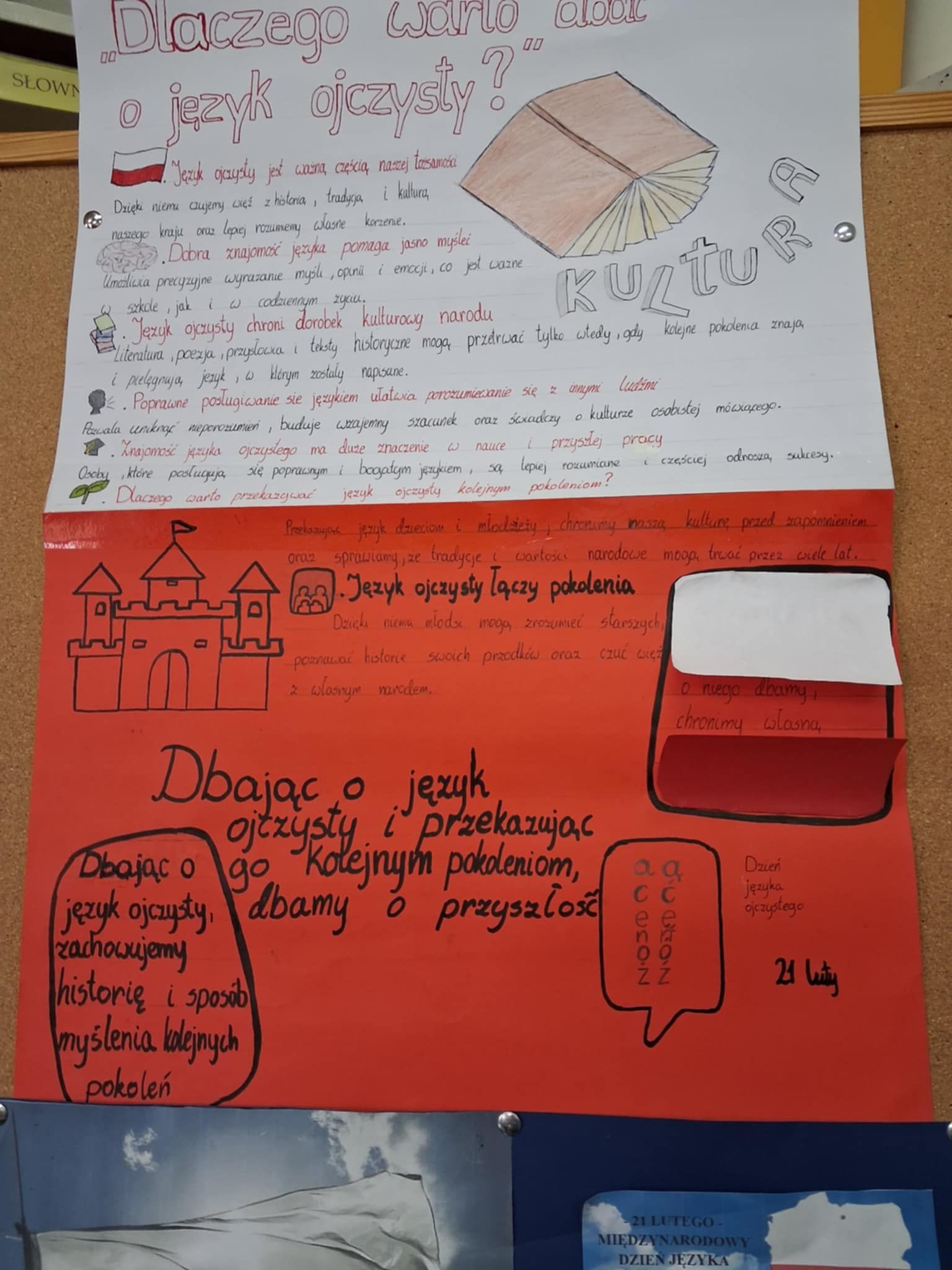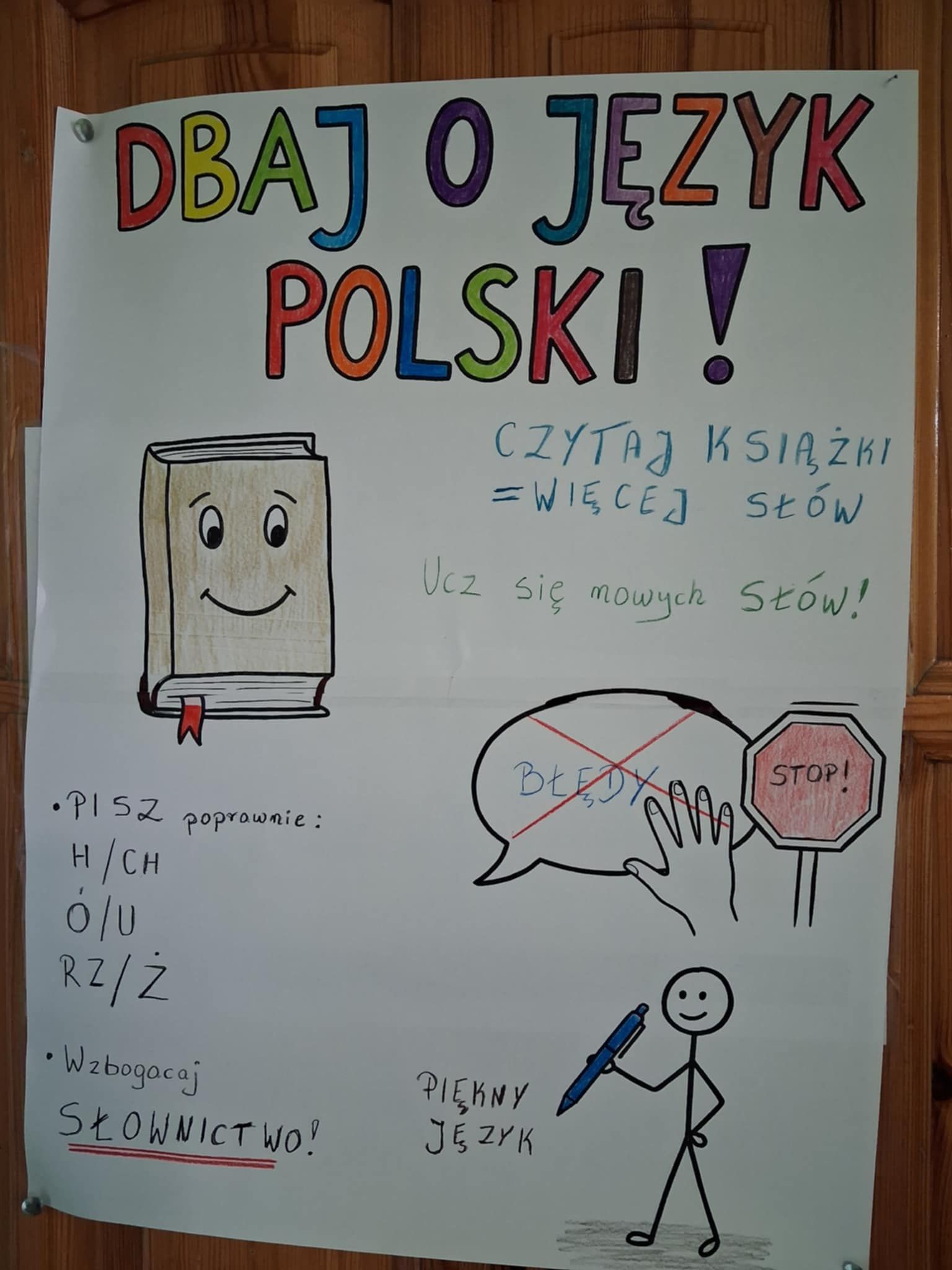W naszej szkole 23 lutego uroczyście obchodziliśmy Międzynarodowy Dzień Języka Ojczystego, którego celem jest podkreślenie znaczenia języka polskiego, dbałości o poprawność językową oraz promowanie bogactwa polszczyzny. Z tej okazji zorganizowano szereg konkursów i wspólnych zabaw. Jednym z głównych punktów programu był konkurs na plakat promujący poprawność języka polskiego. Uczniowie wykazali się wyjątkową kreatywnością – pojawiły się hasła zachęcające do czytania, unikania błędów językowych, starannego mówienia oraz doceniania piękna naszego języka. Najciekawsze prace zostały wyeksponowane na szkolnym korytarzu. Dużym zainteresowaniem cieszyła się także akcja „Język polski na ubraniach”, w ramach której uczniowie mogli przyjść w koszulkach ozdobionych cytatami, przysłowiami, ciekawymi słowami lub zabawnymi grami słownymi. Inicjatywa ta zwróciła uwagę na to, jak codziennie otaczają nas słowa. Podczas obchodów odbywały się również gry i zabawy językowe, które miały na celu nie tylko poszerzenie wiedzy o języku polskim, ale także integrację uczniów. Wśród proponowanych aktywności znalazły się m.in.: łamańce, rozsypanki i kalambury językowe oraz zagadki gramatyczne. Tegoroczne obchody Dnia Języka Ojczystego upłynęły w atmosferze dobrej zabawy, ale również refleksji nad tym, jak ważne jest pielęgnowanie naszego języka. Uczniowie udowodnili, że język polski może być inspirujący, twórczy i pełen humoru.