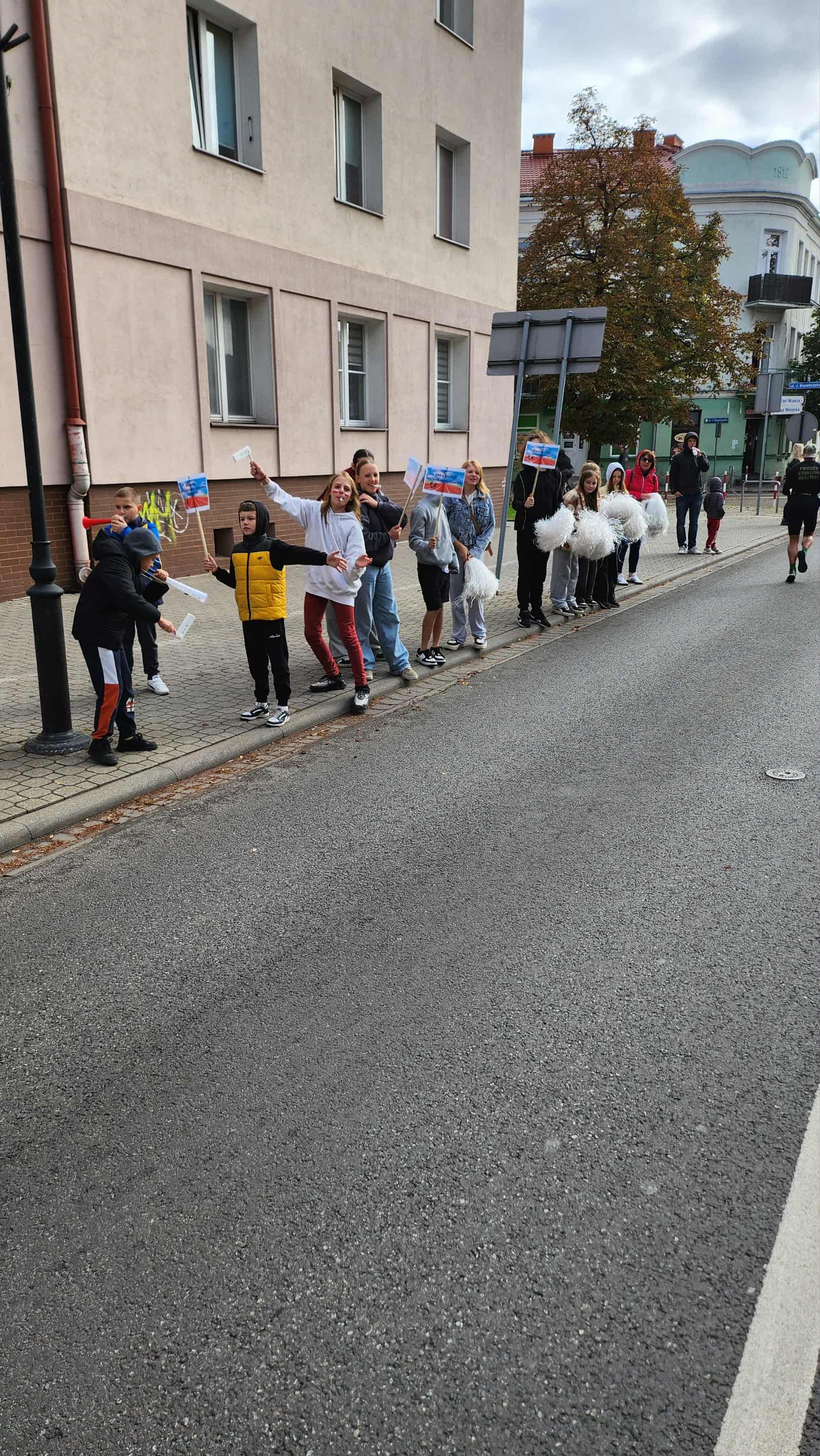 Wśród nich pojawiła się również Szkoła Podstawowa nr 10, która wspierała biegaczy z poziomu strefy kibica przy ulicy Chopina. Dzięki transparentom, okrzykom i dopingowi uczniowie oraz nauczyciele pani Grażyna Kobielska oraz pani Dominika Stolcman dodawali energii zawodnikom przechodzącym obok.