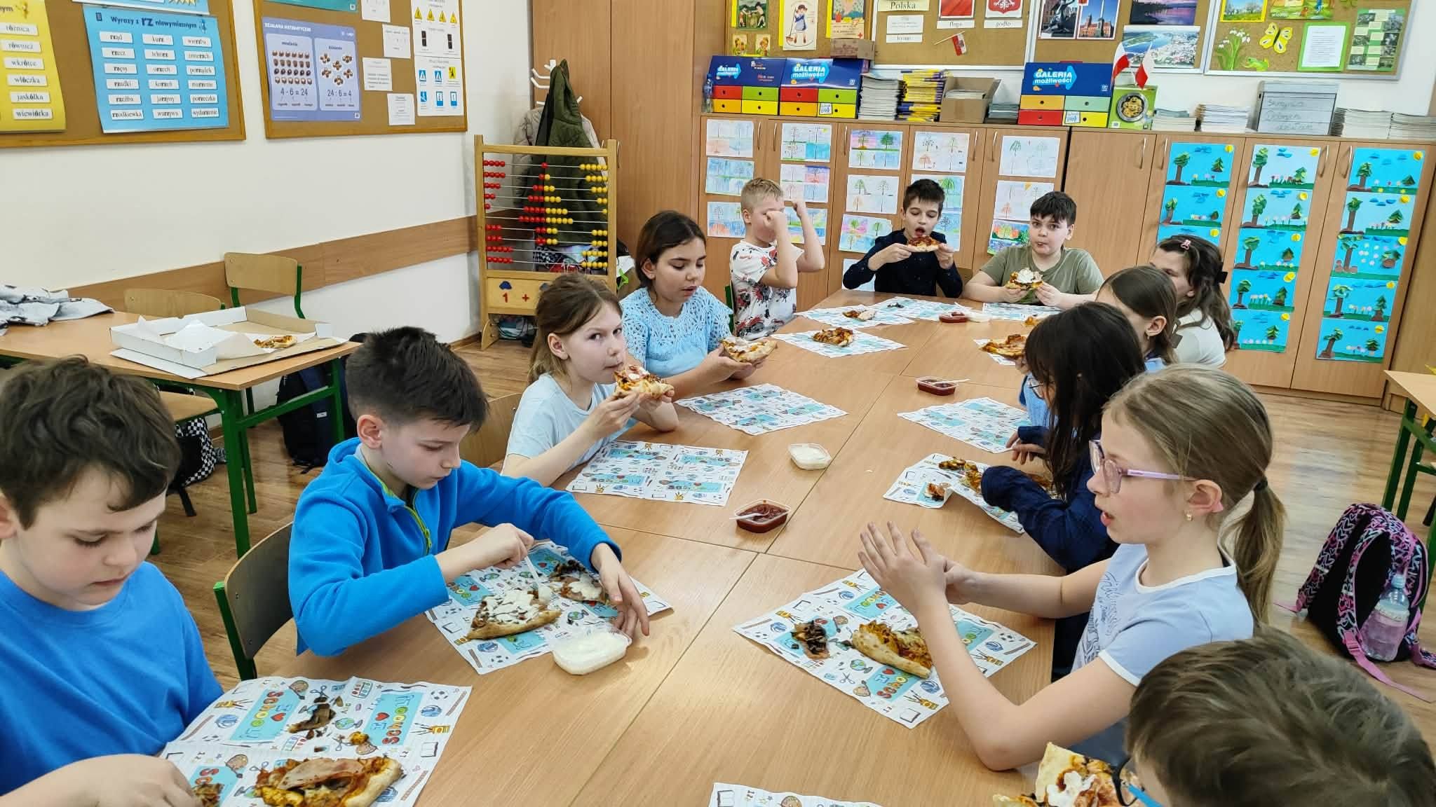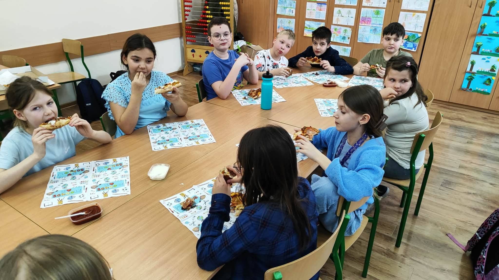 Uczta w kl. III a. Realizacja voucheru na pizzę - nagrody zdobytej podczas szkolnego Dnia Postaci z Bajek