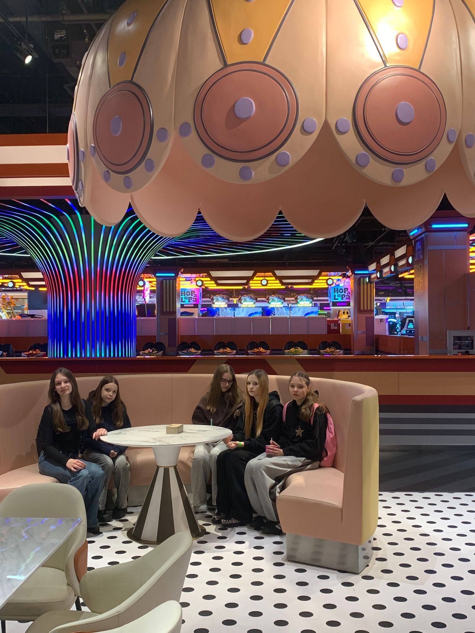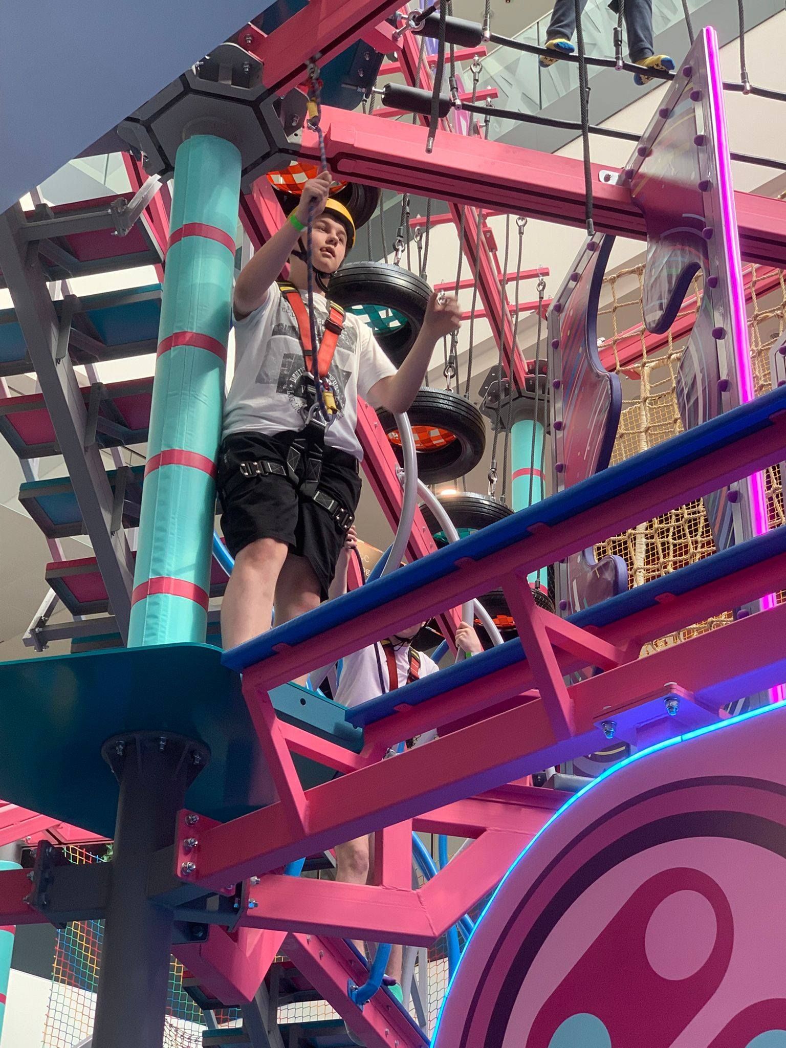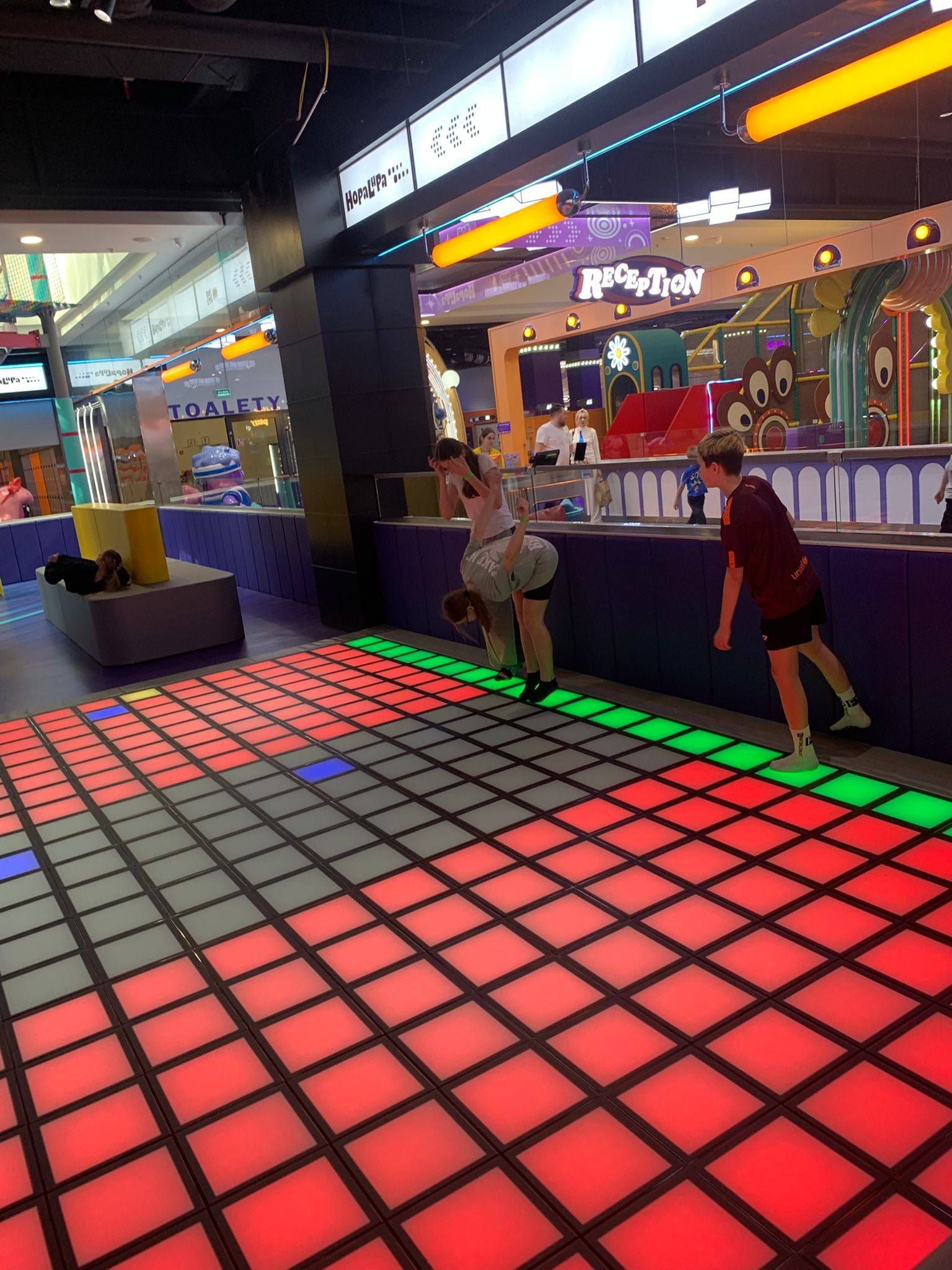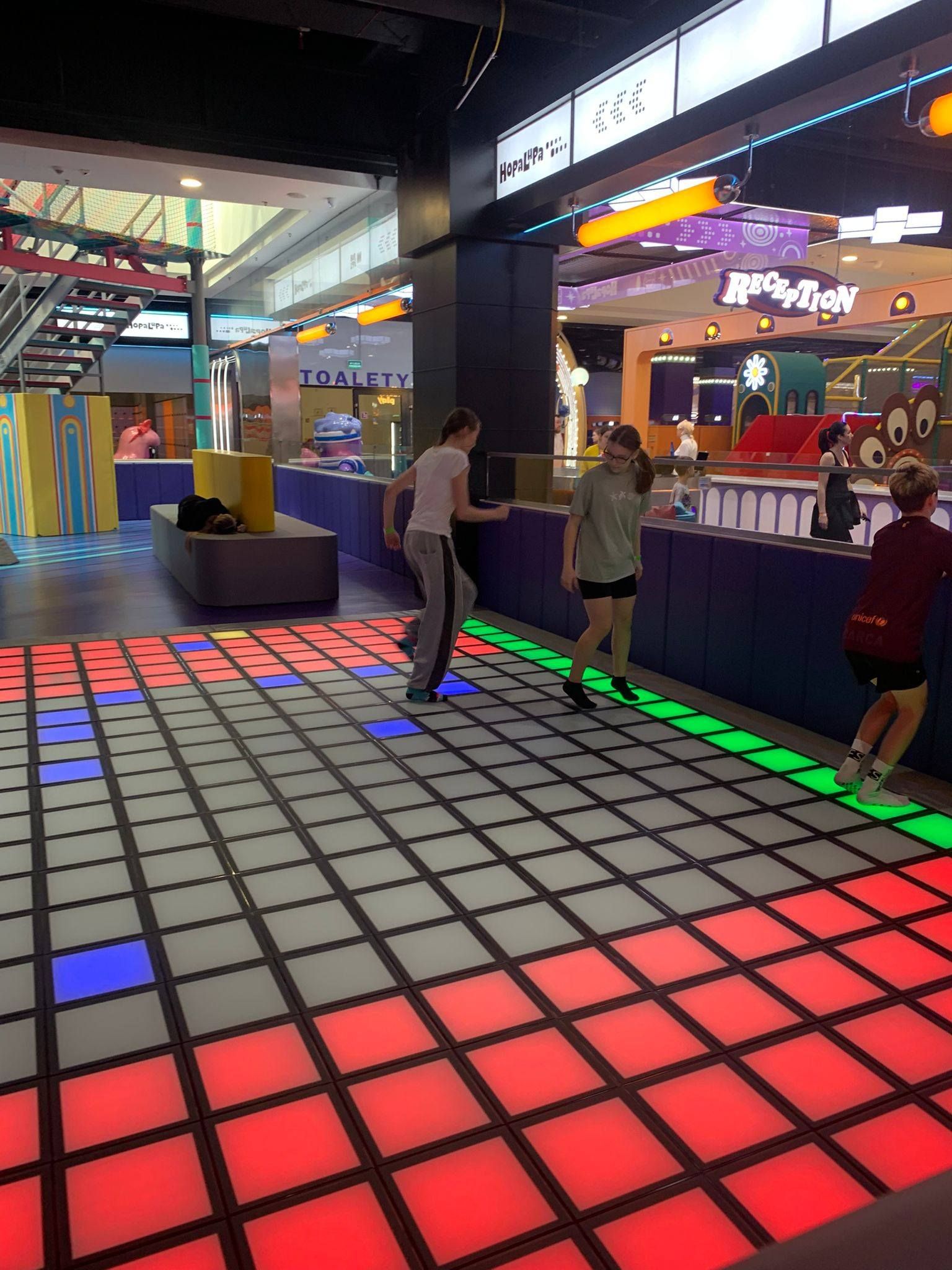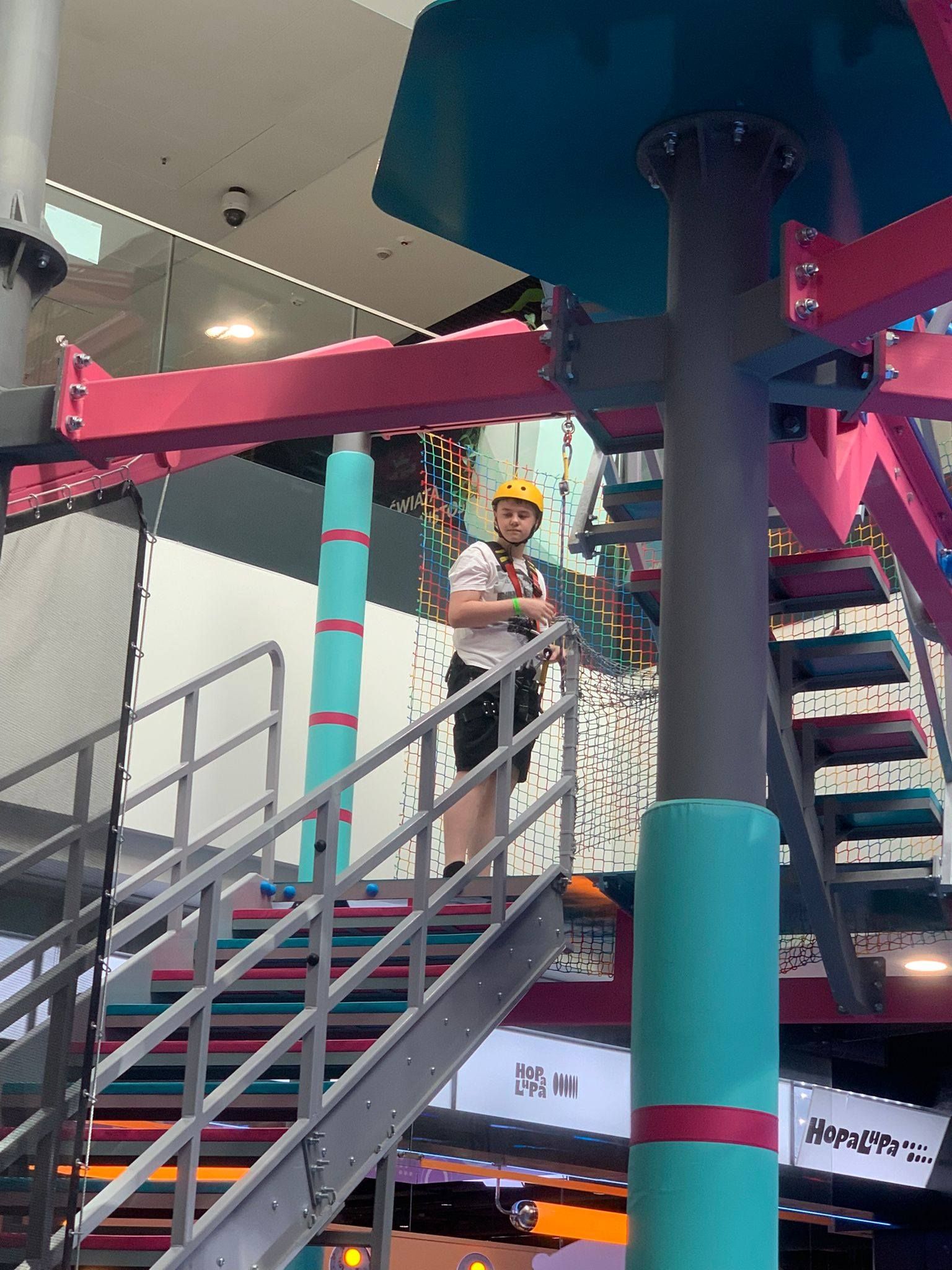 Pierwszym punktem programu była wizyta w centrum rozrywki Hopa Lupa. Uczniowie mieli okazję korzystać z licznych atrakcji, takich jak trampoliny, tory przeszkód oraz strefy zabaw. Pobyt w tym miejscu dostarczył wszystkim wielu emocji i radości, a także pozwolił na aktywność fizyczną w bezpiecznych warunkach. Uczniowie chętnie uczestniczyli w zabawach i rywalizacjach, wykazując się dużym zaangażowaniem.