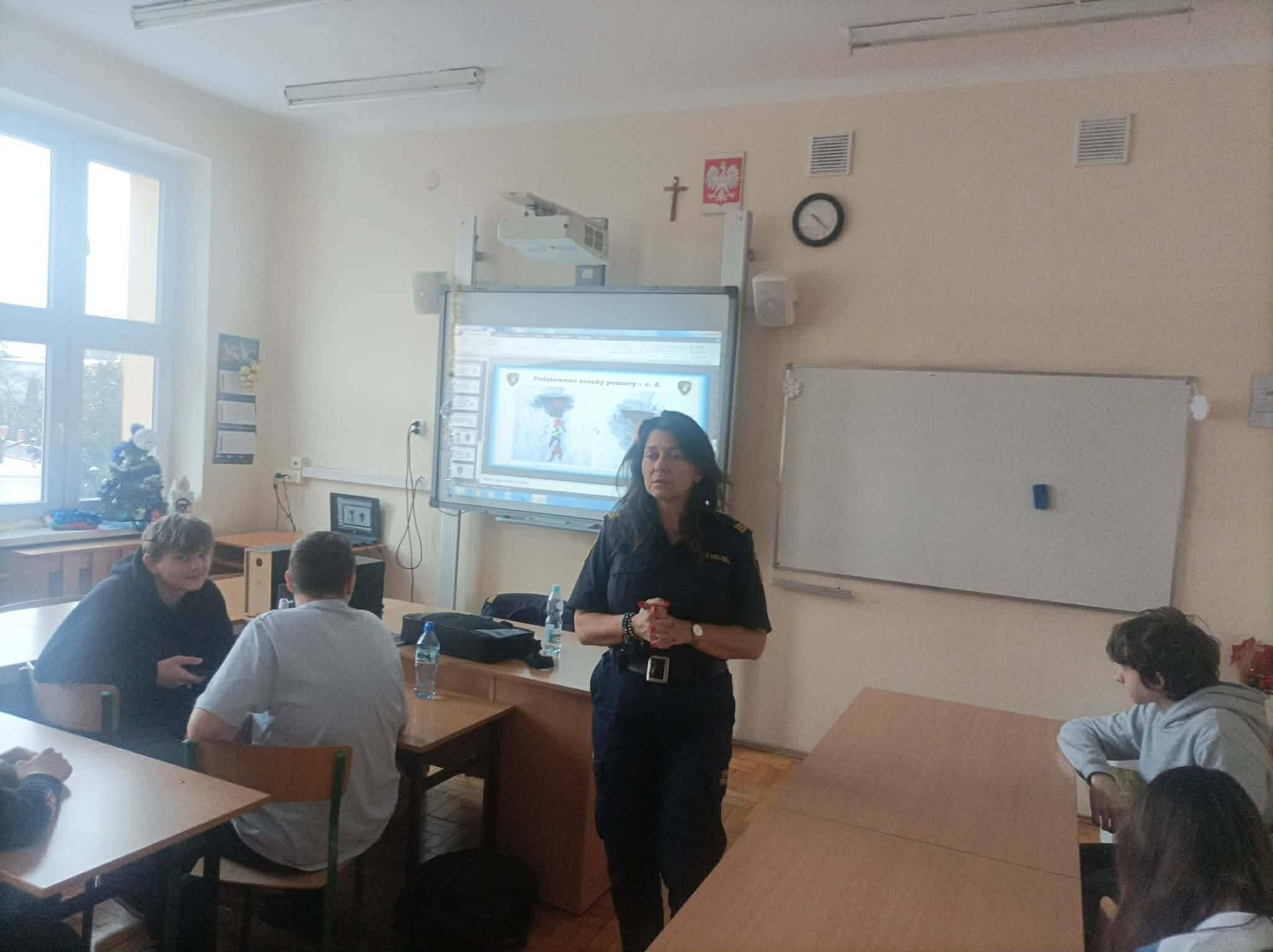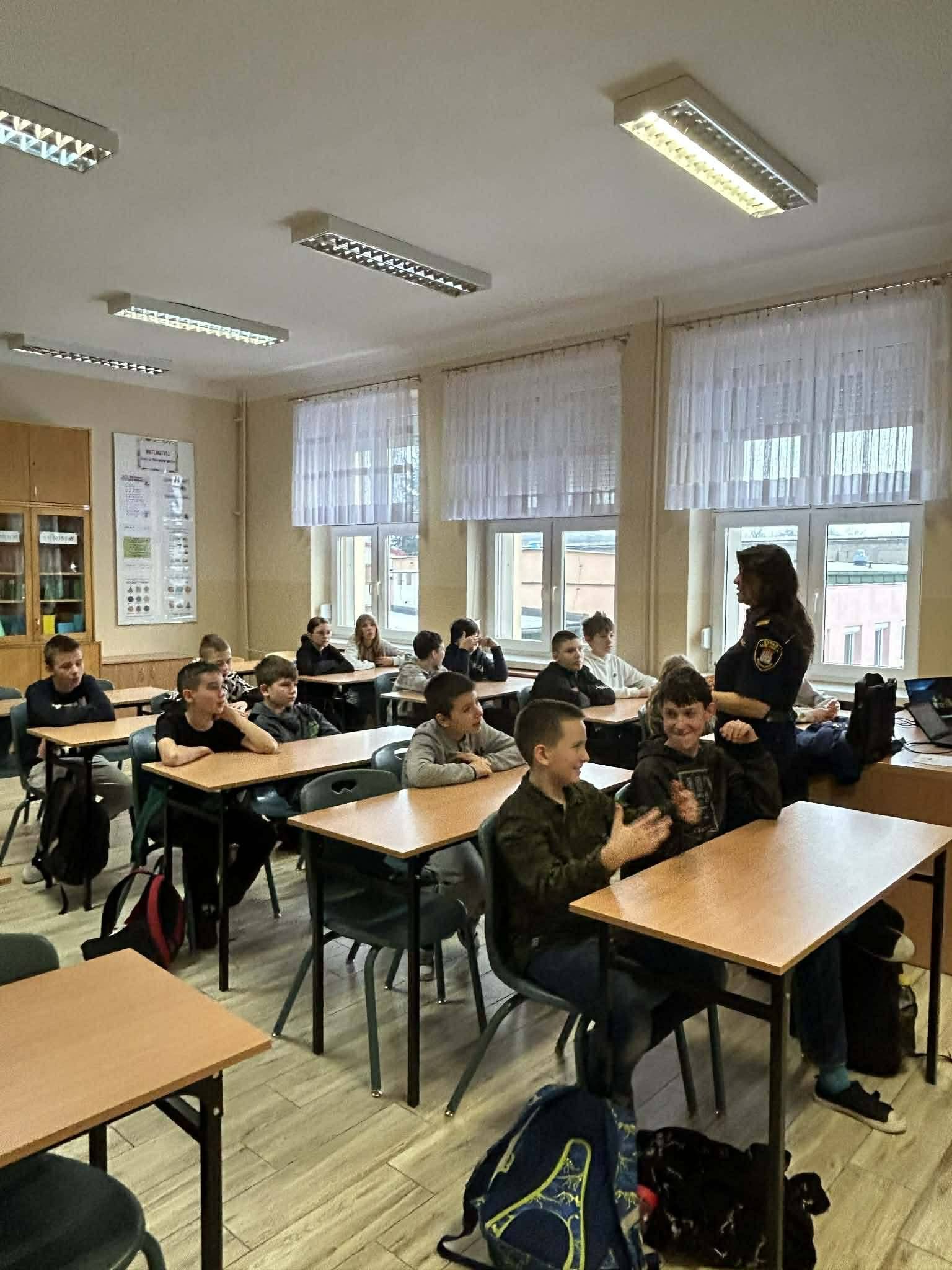 Od początku stycznia klasy 5,6 i 7 spotykały się z p.Elzbietą Rybicką ze Straży Miejskiej na zajęciach poświęconych odpowiedzialności karnej nieletnich, cyberzagrożeniom i bezpieczeństwu w czasie ferii.