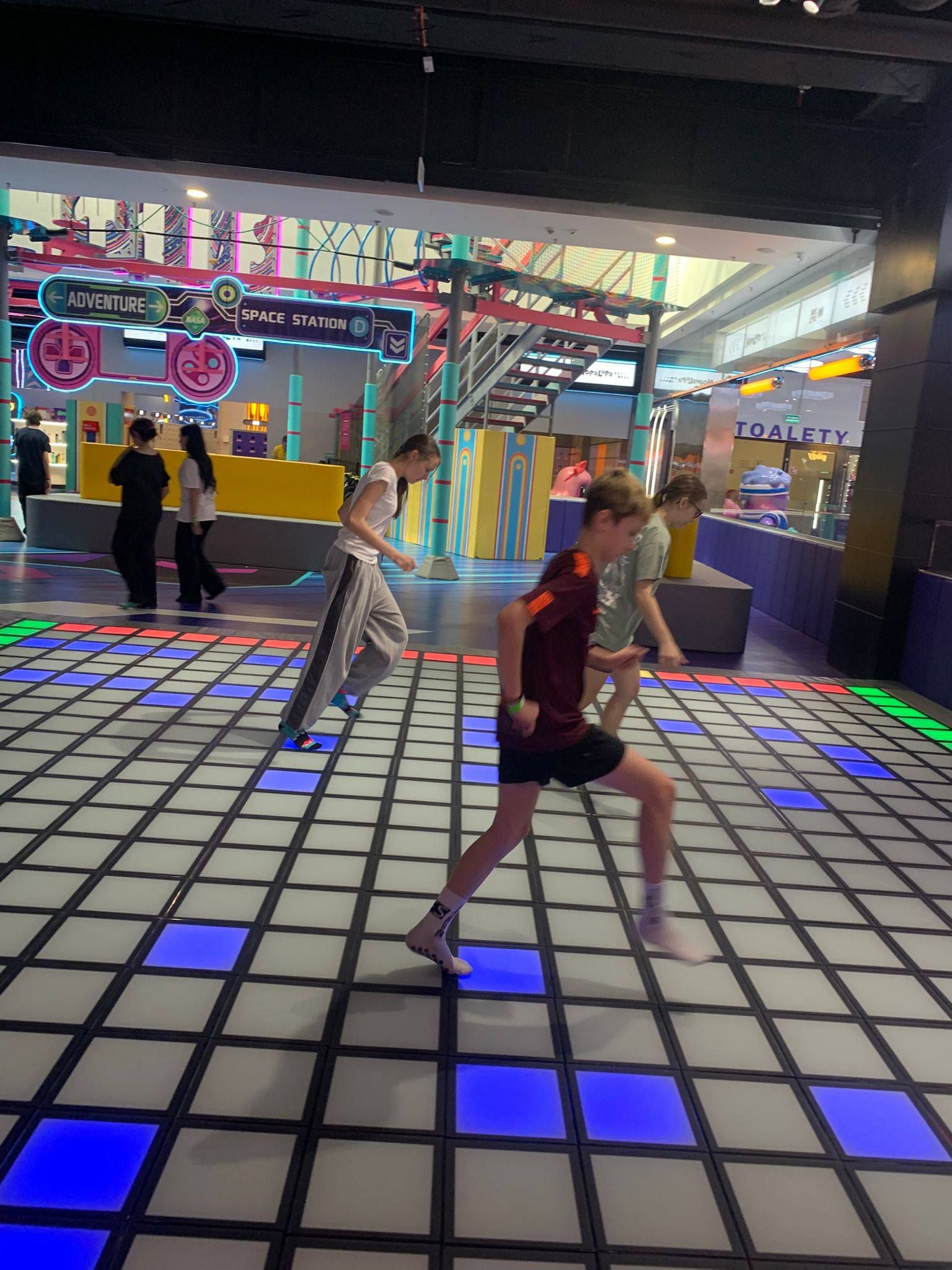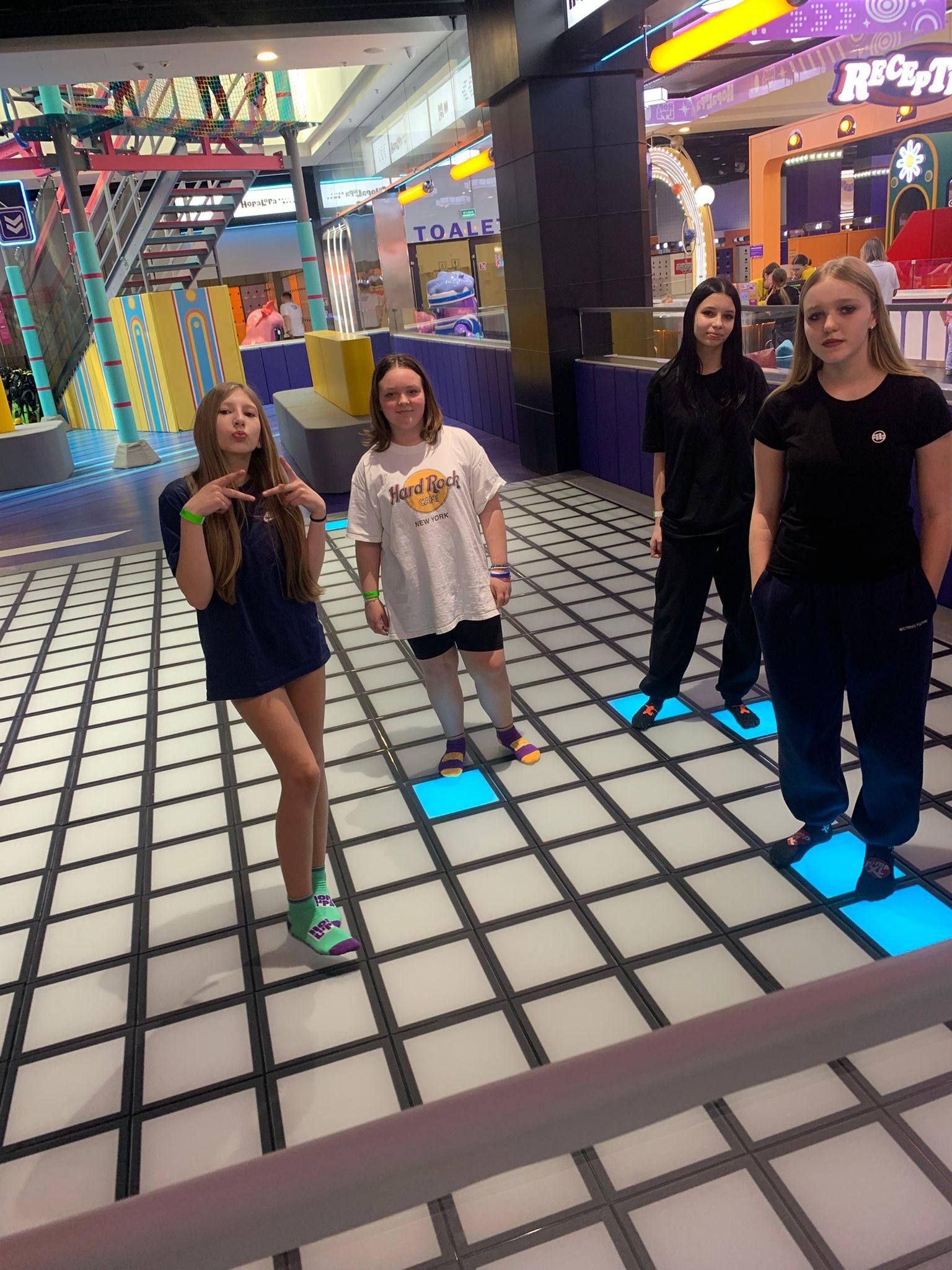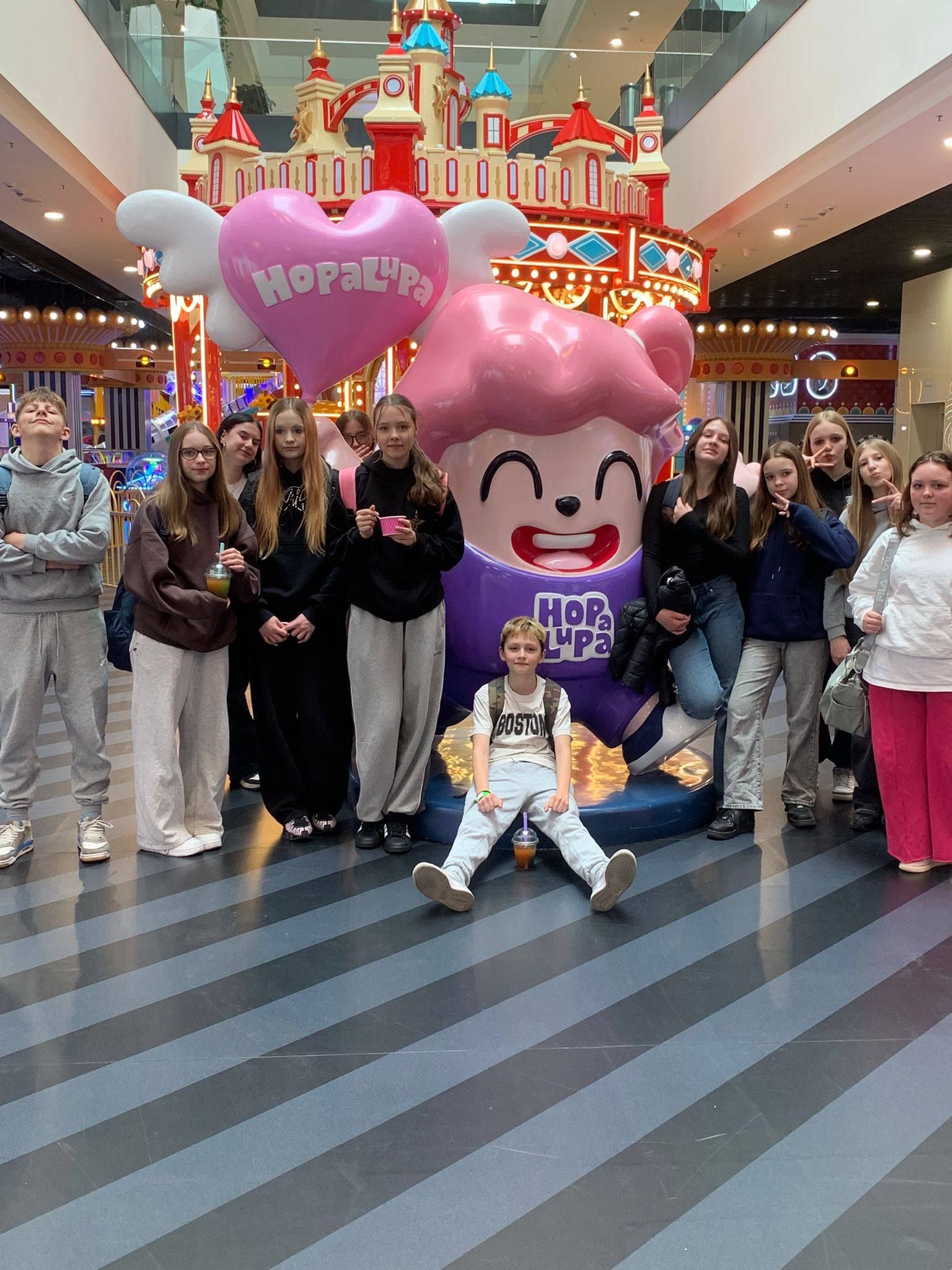 Pierwszym punktem programu była wizyta w centrum rozrywki Hopa Lupa. Uczniowie mieli okazję korzystać z licznych atrakcji, takich jak trampoliny, tory przeszkód oraz strefy zabaw. Pobyt w tym miejscu dostarczył wszystkim wielu emocji i radości, a także pozwolił na aktywność fizyczną w bezpiecznych warunkach. Uczniowie chętnie uczestniczyli w zabawach i rywalizacjach, wykazując się dużym zaangażowaniem.