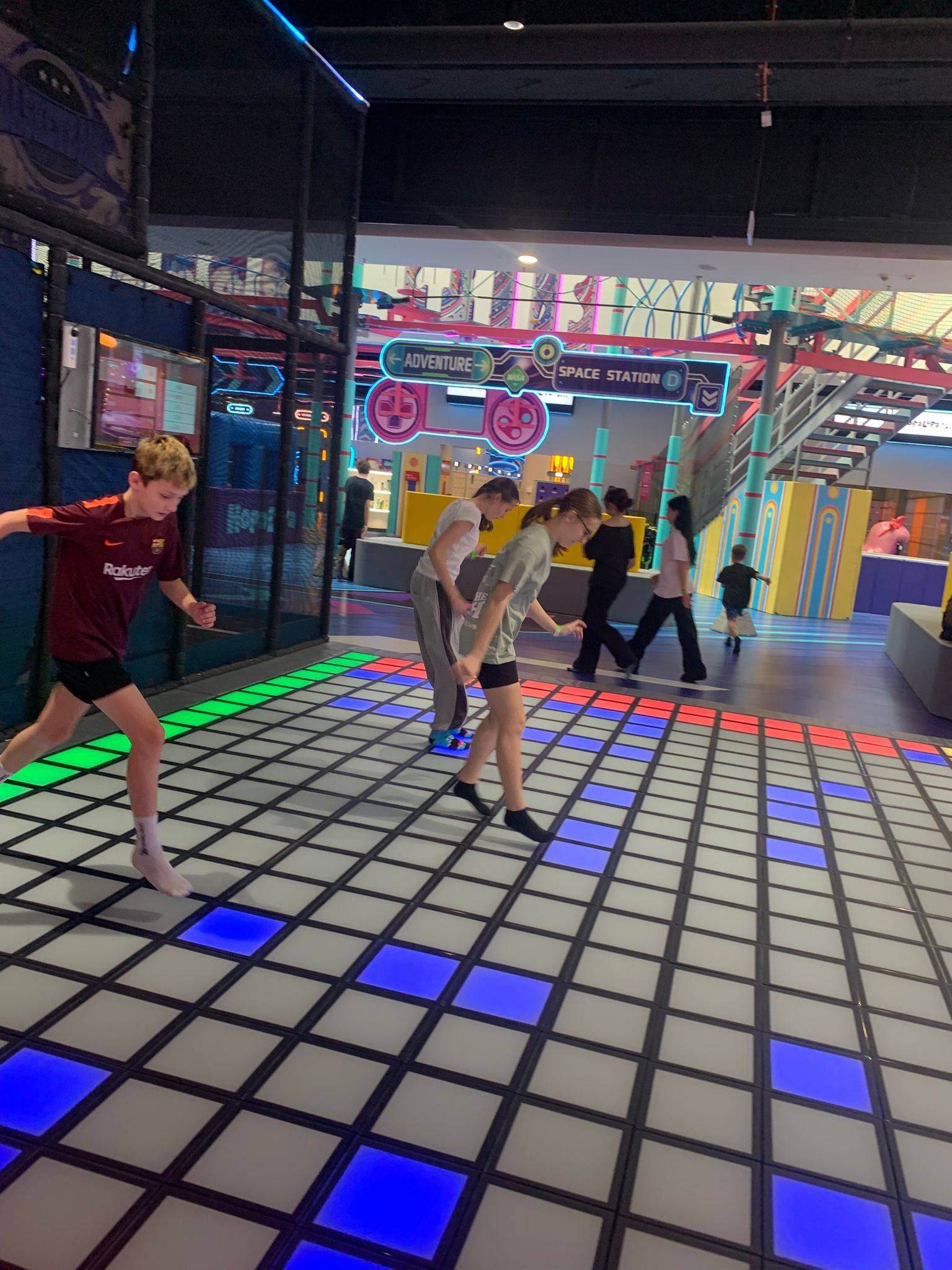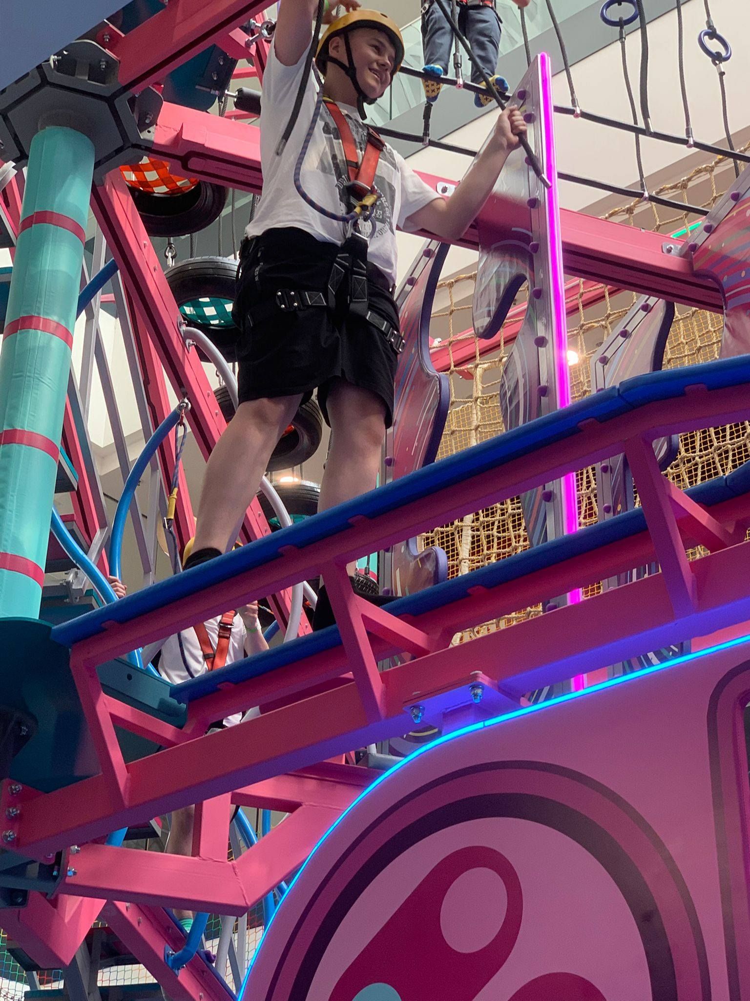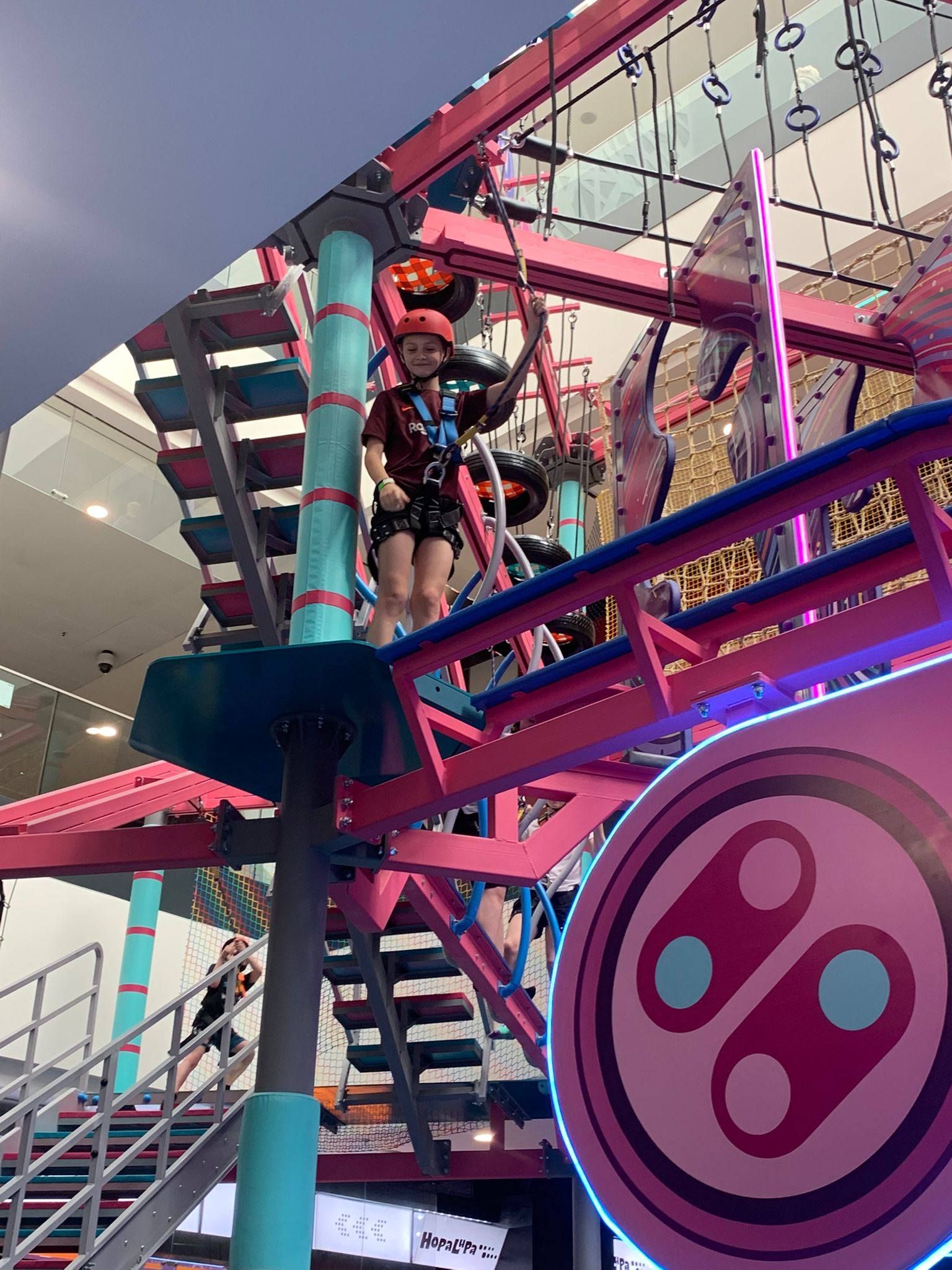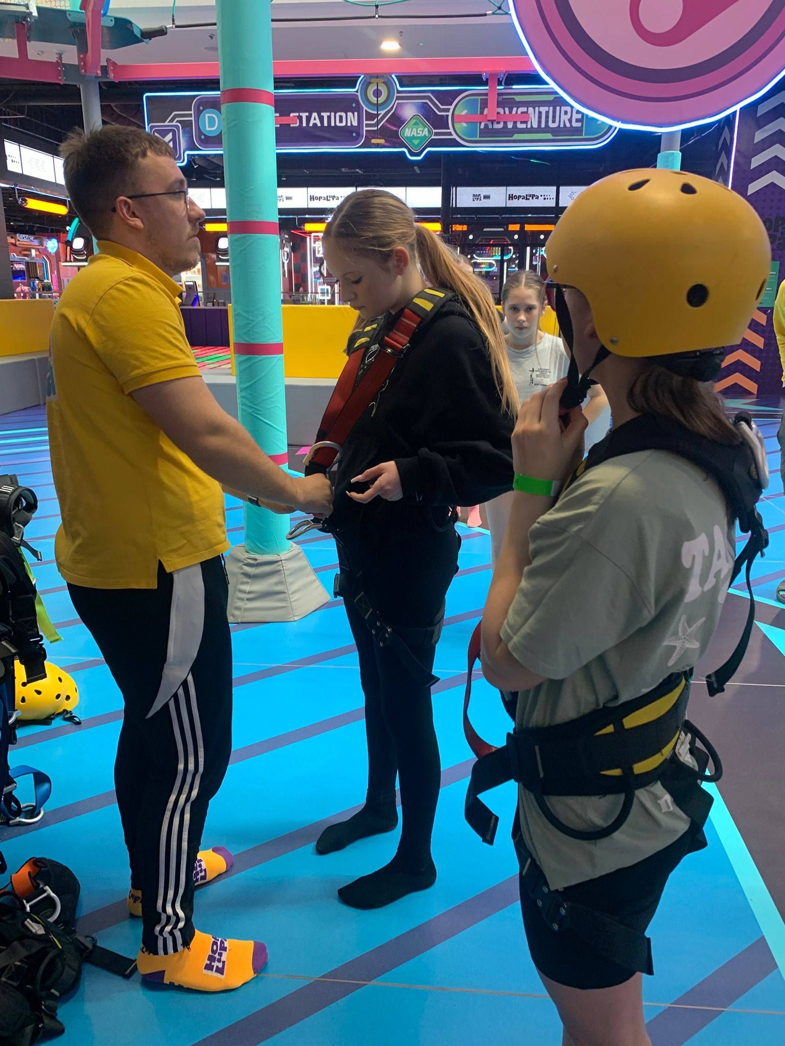 Pierwszym punktem programu była wizyta w centrum rozrywki Hopa Lupa. Uczniowie mieli okazję korzystać z licznych atrakcji, takich jak trampoliny, tory przeszkód oraz strefy zabaw. Pobyt w tym miejscu dostarczył wszystkim wielu emocji i radości, a także pozwolił na aktywność fizyczną w bezpiecznych warunkach. Uczniowie chętnie uczestniczyli w zabawach i rywalizacjach, wykazując się dużym zaangażowaniem.